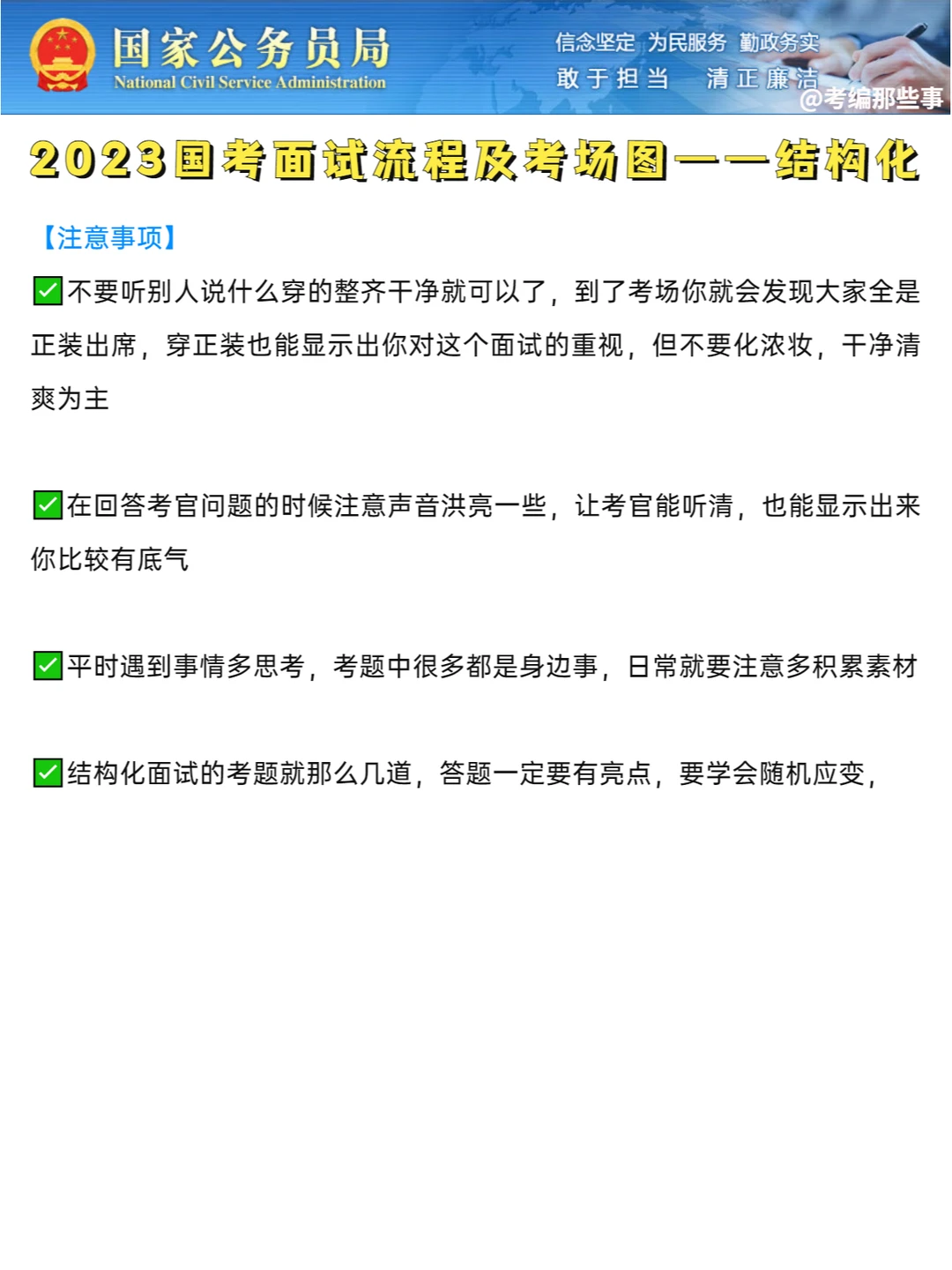 ✅注意:自我介绍不能报姓名;一定要坐正坐直;考官读导语时可以适当和考官眼神交流。
