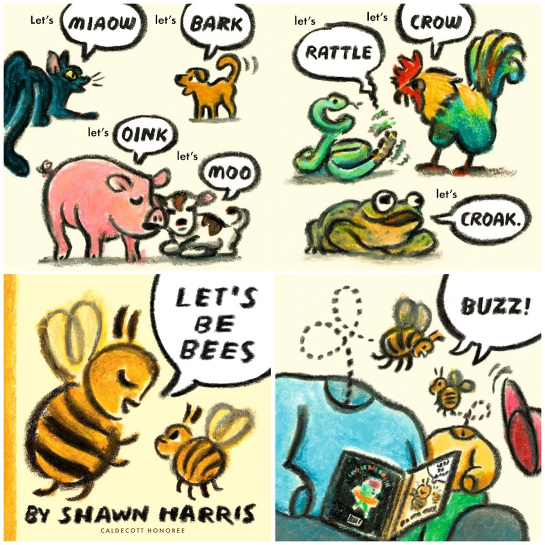 跟随嗡嗡蜜蜂穿梭花丛,在 “Bzzz…/What’s that?” 的灵动诗句中,透过绚丽插画见证蜜蜂采蜜、授粉的奇妙旅程。