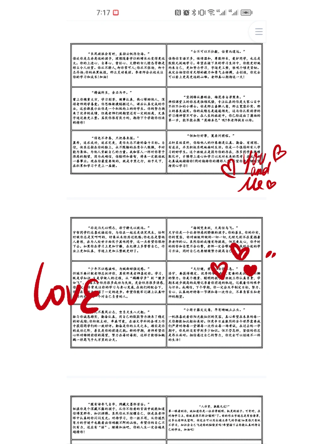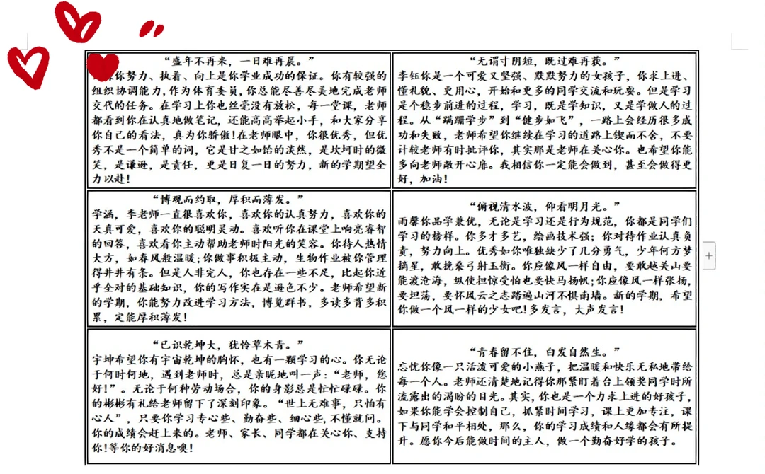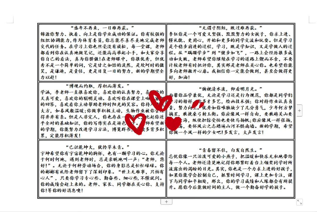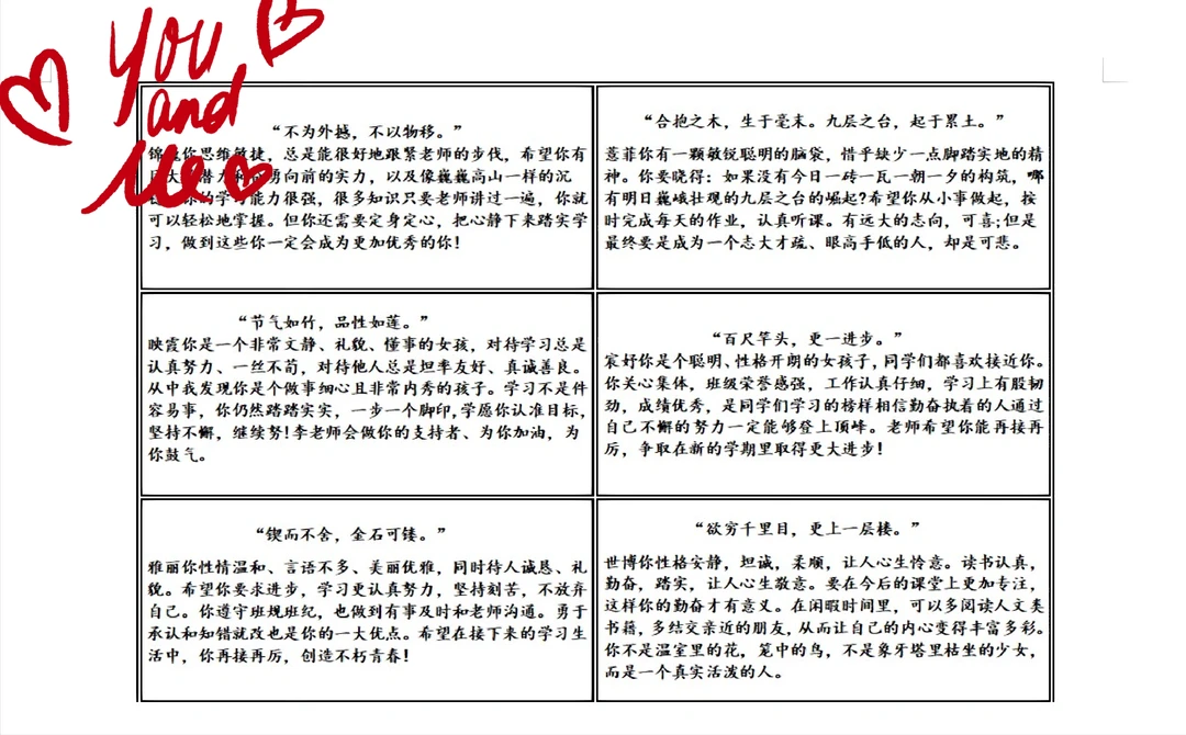 制作表格排版诗句+评语