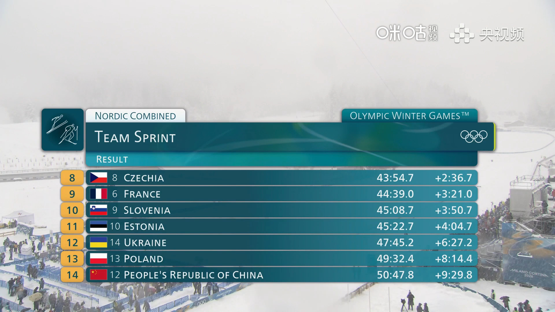 #赵嘉文赵子贺团体短距离完赛#米兰冬奥会北欧两项团体短距离大雪中进行,中国队赵嘉文、赵子贺总成绩50:47.8,第14名完赛。两位选手不畏强手、全力以赴,展现了中国冰雪的拼搏精神。#看冬奥上咪咕#