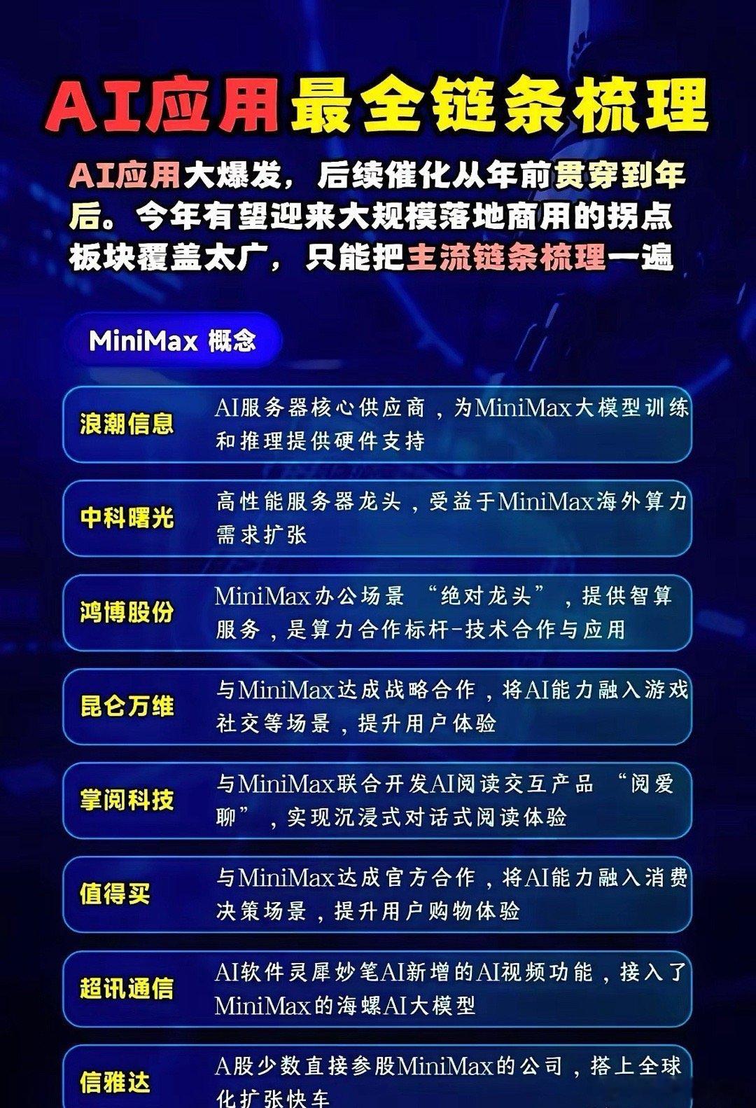 AI应用!节后风头必然会盖过机器人。道理很简单,没有AI人工智能的灵魂注入,机器人就是一堆冷冰冰的废铁,充其量是会跟着指令做各种动作的机械。而一旦具有了AI人工智能的注入,这堆铁块它就活了。在AI人工智能领域,字节即梦AI领域的A股上市公司有:引力传媒,风语竹、上海电影、视觉中国、蓝色光标、润泽科技等。在AI漫剧领域主要有:以中文在线、捷成股份、掌阅科技等为代表的IP版权领域。以华策影视、欢瑞世纪、上海电影等为代表的影视传媒领域。以完美世界、凯英网络、奥飞数据等为代表的游戏领域。以蓝色光标、省广集团、易点天下等为代表的广告营销领域。而浪潮信息、工业富联、中科曙光是AI算力硬件的国产先锋。浪潮信息的股价在节前回调至年线附近后展开A浪小幅反弹。该股当前流通市值958.28亿。从月线上看,该股走势长期强于大盘指数。当前股价已经突破历史最高点。短线注意高位回调风险。