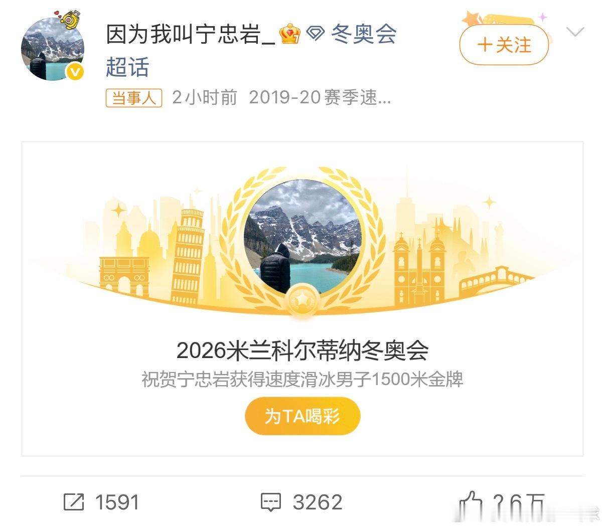 中国队米兰冬奥第3金1分41秒98,宁忠岩在米兰冰场上划破了欧美选手的长期垄断,为中国代表团拿下米兰冬奥第三金。这不仅是一块金牌,更是中国速度滑冰的里程碑,是他用四年汗水和坚持,在奥运赛场上刻下的荣耀印记。