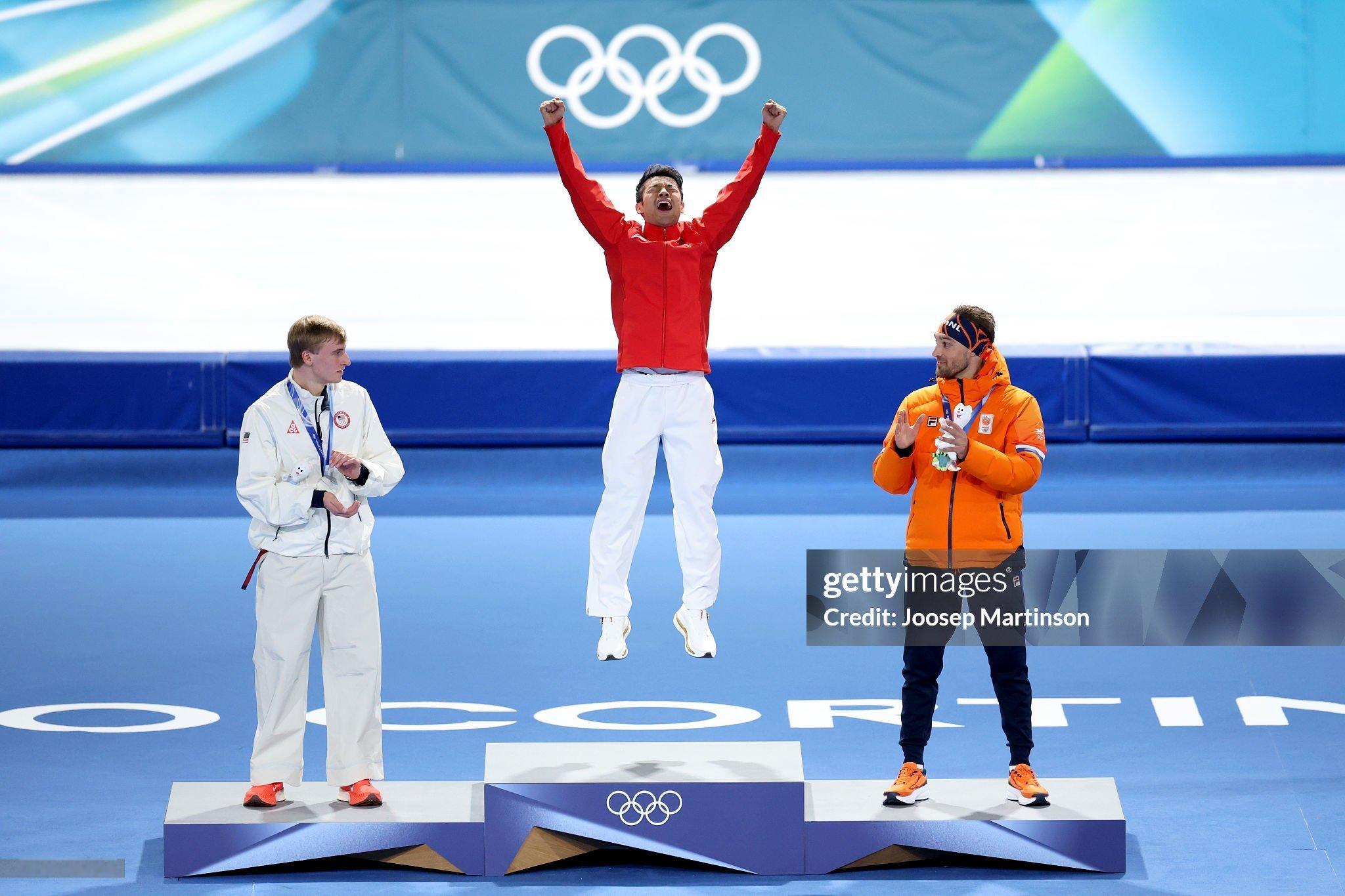OMG !!!中国队本届第三金来啦 !!!在刚才结束的速度滑冰男子 1500 米项目上中国运动员宁忠岩以打破奥运纪录的成绩强势夺冠 !!!太太太太牛了 !