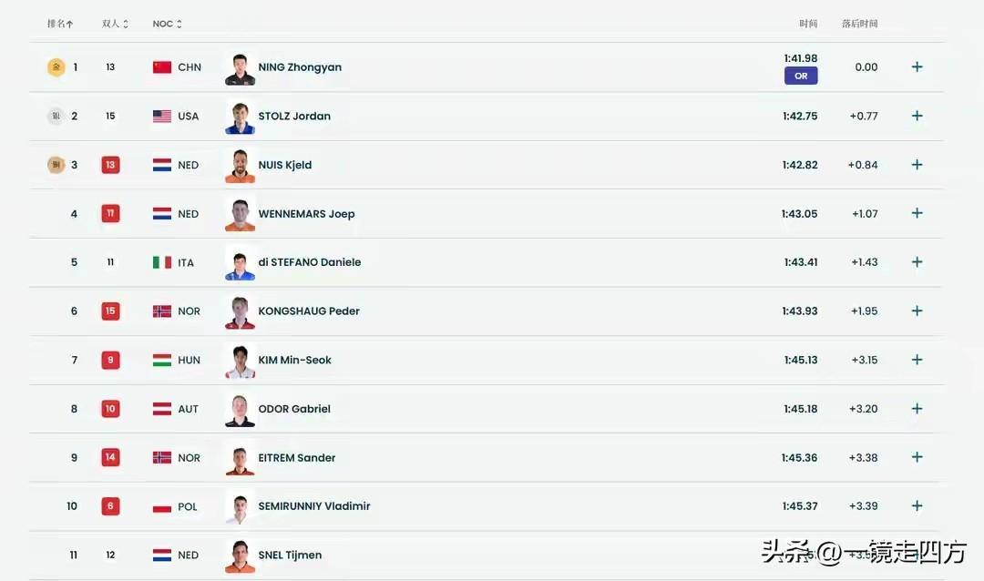 疯了,宁忠岩彻底滑疯了!在刚刚结束的米兰冬奥会速度滑冰男子1500米比赛中,他滑出超奥运纪录的1分41秒98,战胜了包括已收获500米和1000米两金的美国名将斯托尔兹、该项目世界纪录和奥运纪录保持者也是卫冕冠军凯尔·内斯、北京冬奥会该项目铜牌得主金敏锡在内的各路高手,夺得金牌,这是他个人在本届冬奥会拿到的第三枚奖牌,也是中国代表团的第三枚金牌。 宁忠岩是在第13组进行比赛的,之前进行的第11组,荷兰选手乔普·文内马斯滑出1分43秒05的成绩,超过了内斯保持的1分43秒21奥运纪录,暂居第一位。宁忠岩在第13组出场,对决的恰恰是世界纪录和前奥运纪录保持者、卫冕冠军凯尔·内斯。内道出发的宁忠岩首个300米滑出22秒99,暂列全场第二位,后程耐力超强的他,在1100米过后以1分13秒80跃升为全场第一,最终以1分41秒98的成绩完赛,再次改写奥运会纪录,获得冠军。这个成绩也超过了他之前保持的1分42秒02的亚洲纪录和全国纪录,成为亚洲第一位滑进1分42秒大关的运动员。同组的内斯滑出1分42秒82,获得铜牌。而最后一组出场的斯托尔兹滑出,1分42秒75,落后宁忠岩0.77秒,获得银牌。 本届米兰冬奥会,宁忠岩担任了中国代表团的开幕式旗手,之后在1000米和男子团体追逐比赛连获两枚铜牌,这次又在这个北京冬奥会仅拿到第七名的自己的主项1500米强势摘金,这不仅是中国队该项目冬奥历史首金,也是亚洲选手在该项目的首枚金牌。加上北京冬奥会高亭宇在500米夺冠,目前在男子短距离和中距离项目仅差1000米没能收获金牌,而女将张虹在2014年索契冬奥会为中国队拿到的冬奥会速度滑冰首金恰恰是1000米。接下来,宁忠岩还将参加速滑男子集体出发的比赛。