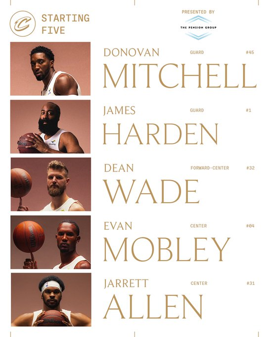 骑士首发:韦德、哈登、阿伦、莫布利、米切尔。