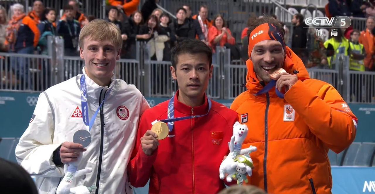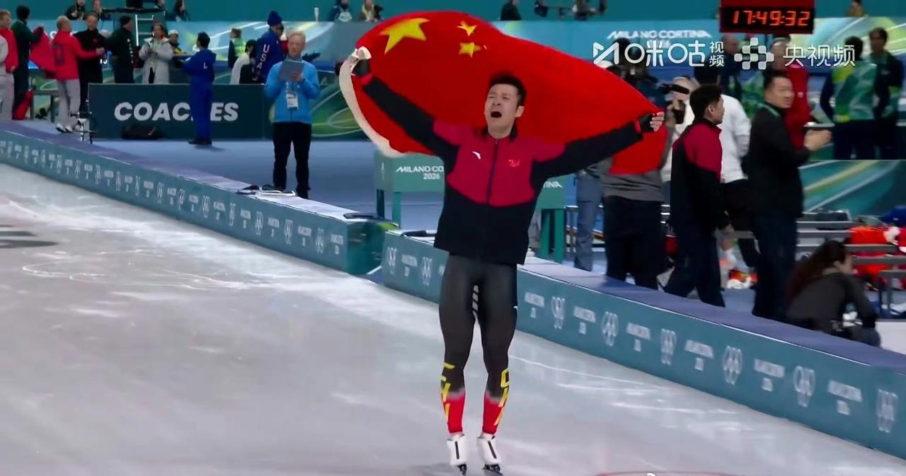 宁忠岩🇨🇳1:41.98,打破奥运记录夺冠[赞]!! 今日凌晨的2026年米兰冬奥会速度滑冰男子1500米比赛中, 谁也没有预判到,我们中国队的开幕式旗手宁忠岩🇨🇳打破奥运会记录夺冠了, 这也是中国队在2026米兰冬奥会上的第三金!,中国队目前在奖牌榜的排名再升两位,超越韩国队来到第12位[赞]! 宁忠岩也成为了第一位站上速度滑冰男子1500米冠军领奖台的亚洲选手! 直播画面上,宁忠岩滑得飞快,铜牌选手被远远甩后头了,异国他乡也没什么加油声音,但宁忠岩就是一直起劲地滑着[赞]。 颁奖仪式前,工作人员提醒冠亚季军要排队入场了,昔日的冠军、今天的亚军斯托尔茨不小心走到了中间,被工作人员指导说,要按照领奖台的顺序排列入场[允悲]。 比赛结束后,宁忠岩落泪了,李琰教练拥抱了他,他的德威特教练为他擦去眼泪,太感人了, 咪咕解说员说,宁忠岩四年备战期间一个人在国外,没有后勤保障,自己做饭,不过我感觉这个教练应该也提供了不少帮助 。 四年前宁忠岩是第七名,今天他来到了第一位,本届冬奥会宁忠岩收获2铜一金,这是他的一个完美奥运之旅[赞][奋斗]!