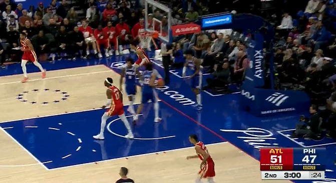 比赛第二节,马克西上篮不中目前12中3,杰伦-约翰逊反击打进已砍下17分。