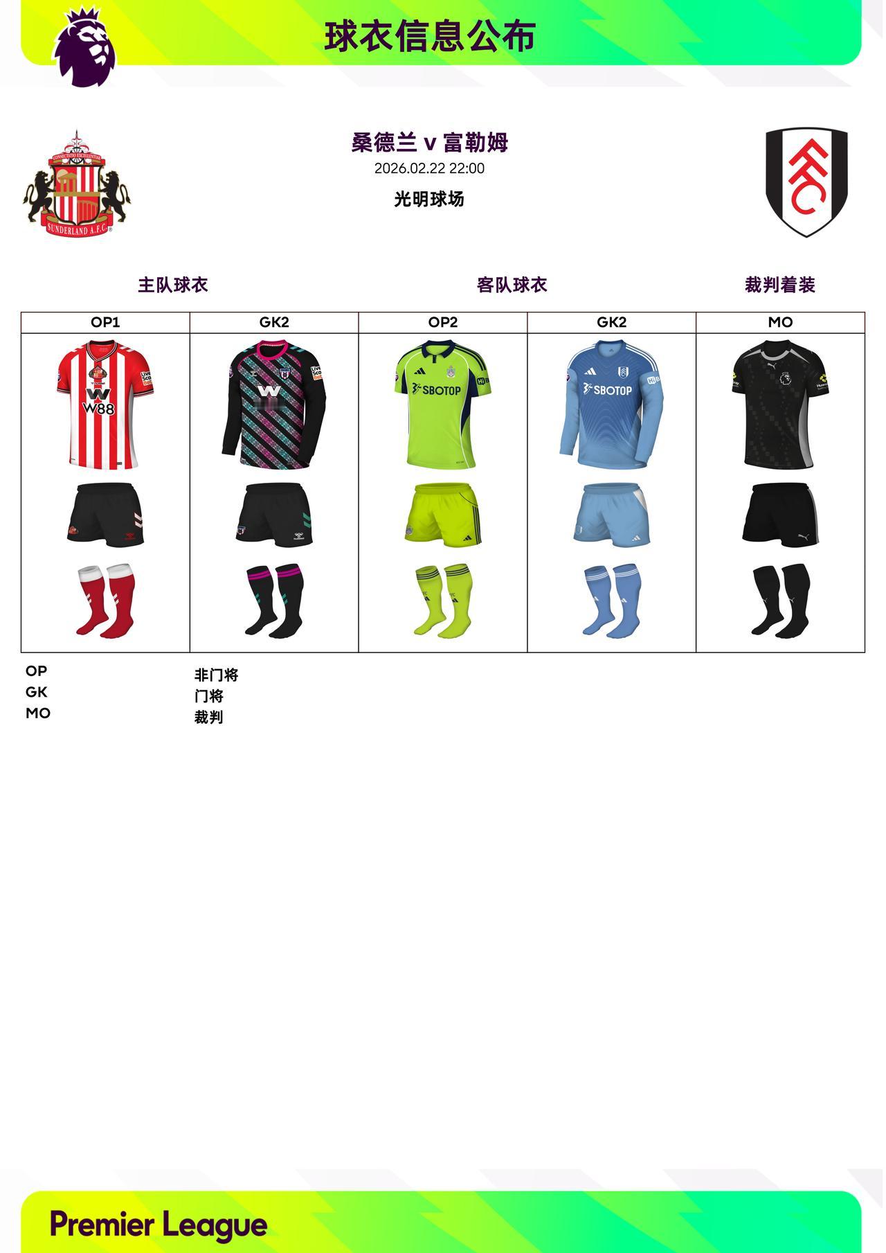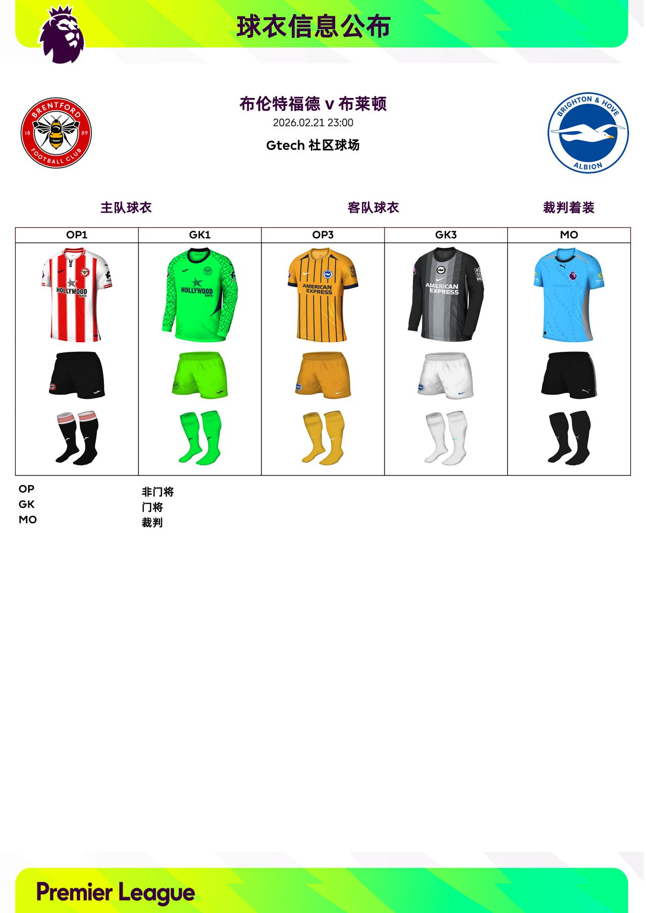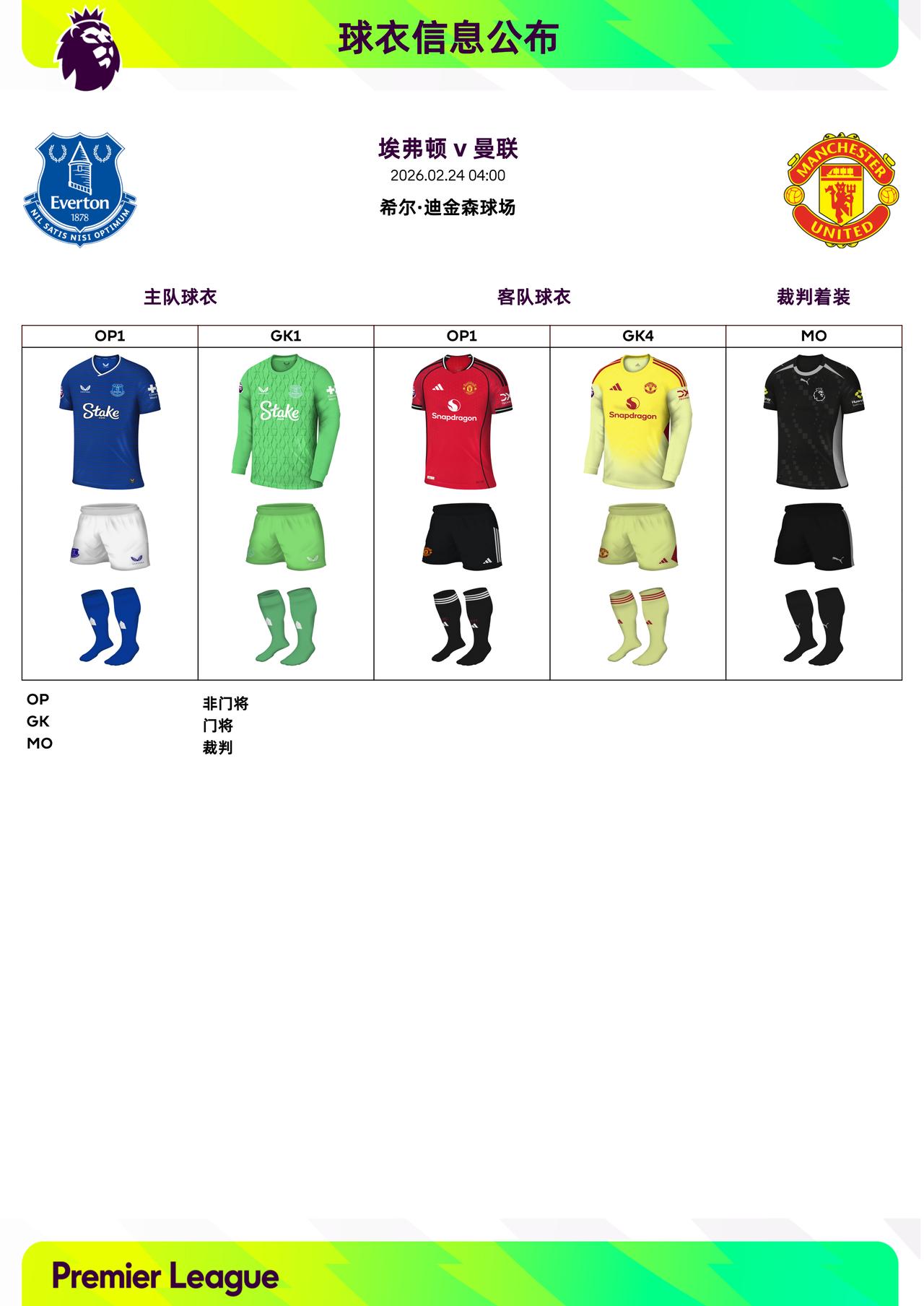2025/26赛季英超联赛第27轮球衣信息: ◉ 焦点战——托特纳姆热刺 v 阿森纳 ,双方均穿主场球衣