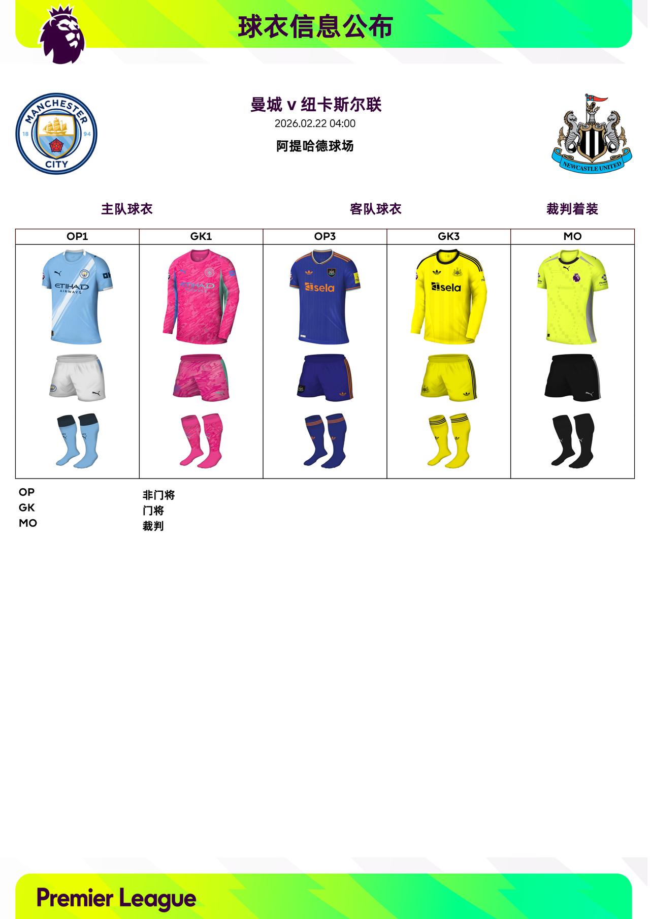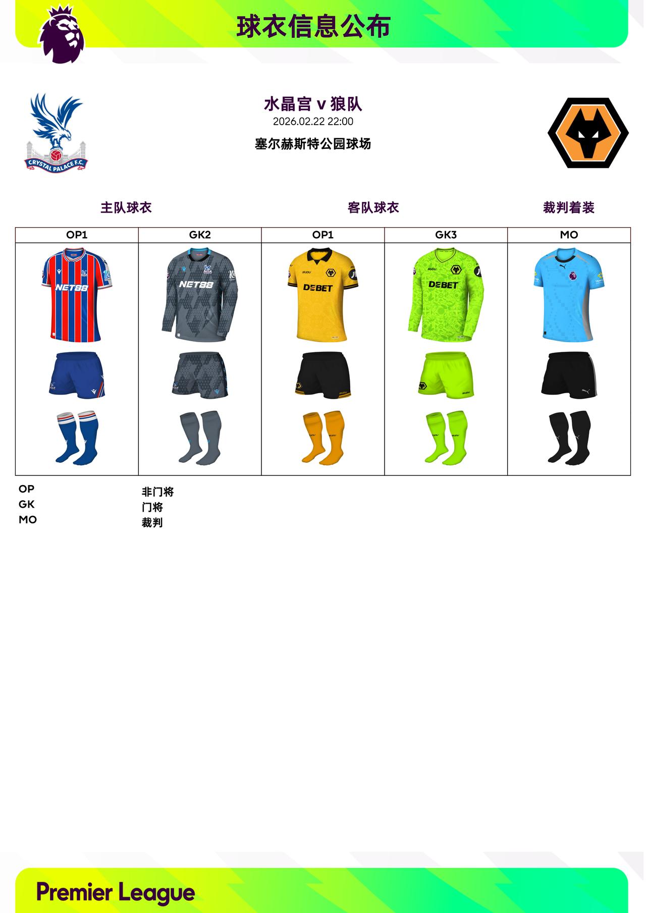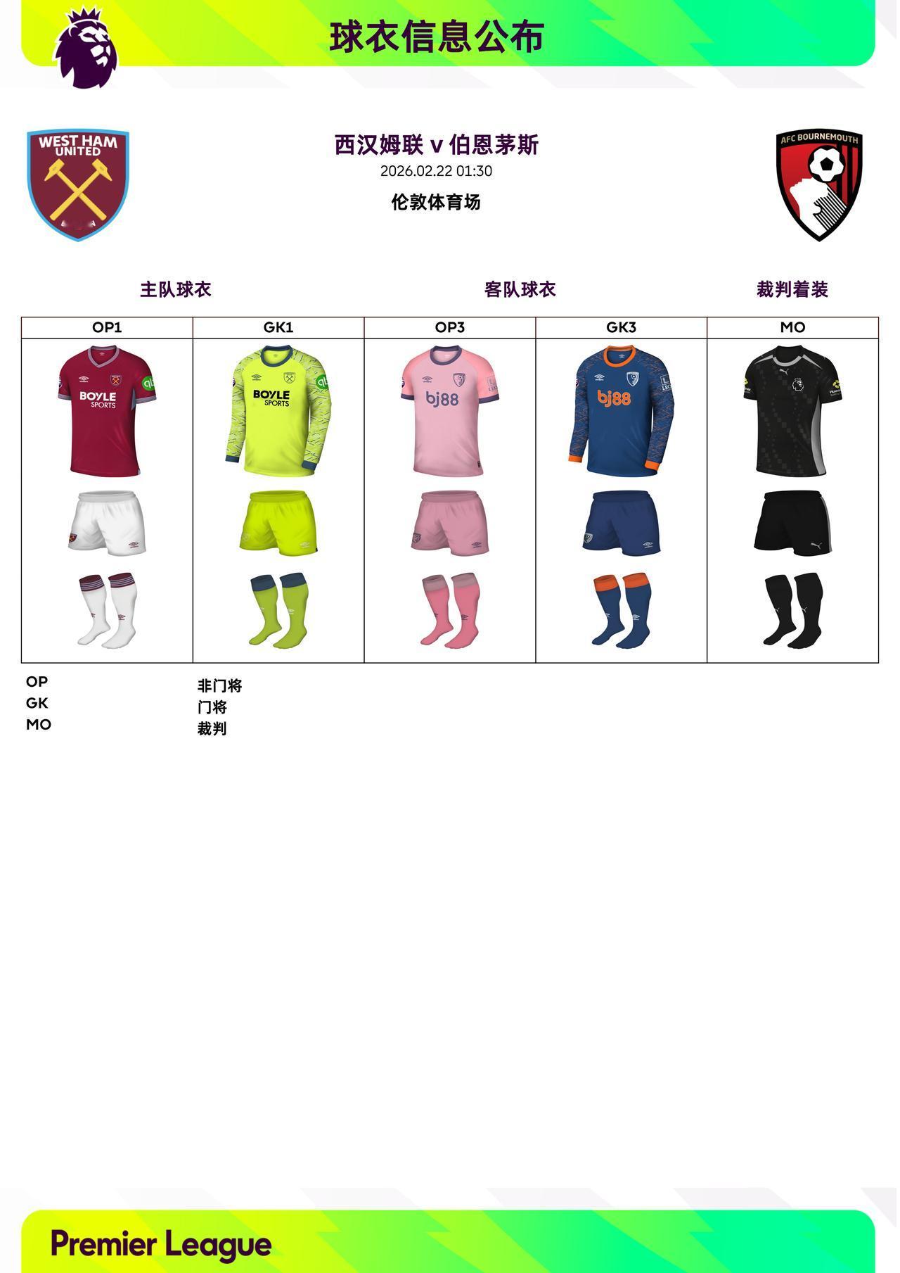 2025/26赛季英超联赛第27轮球衣信息: ◉ 焦点战——托特纳姆热刺 v 阿森纳 ,双方均穿主场球衣