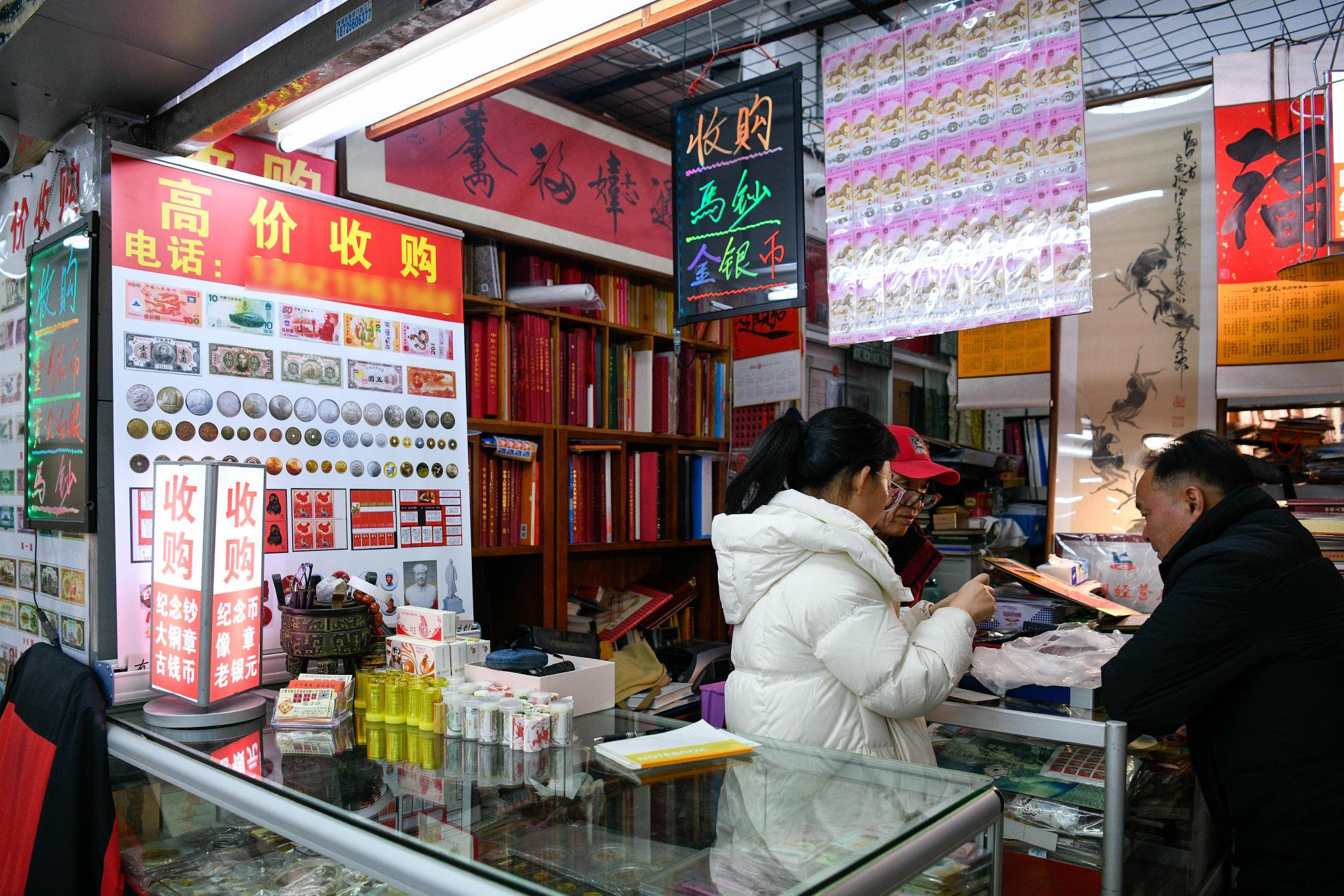 马钞、马币预约兑换环节已结束,但二级市场仍然十分热闹。局门路上的上海卢工邮币卡交易市场几乎所有摊位上都摆放着马钞,不少门头挂着“高价回收马钞”的字样,一旦有人驻足,商户便立刻上前询问是否要购买或者出售。商户宋先生告诉记者:“生肖钞热度一年比一年高;纪念币板块,丙午马是第二轮生肖纪念币的最后一枚,配套需求也不少。”