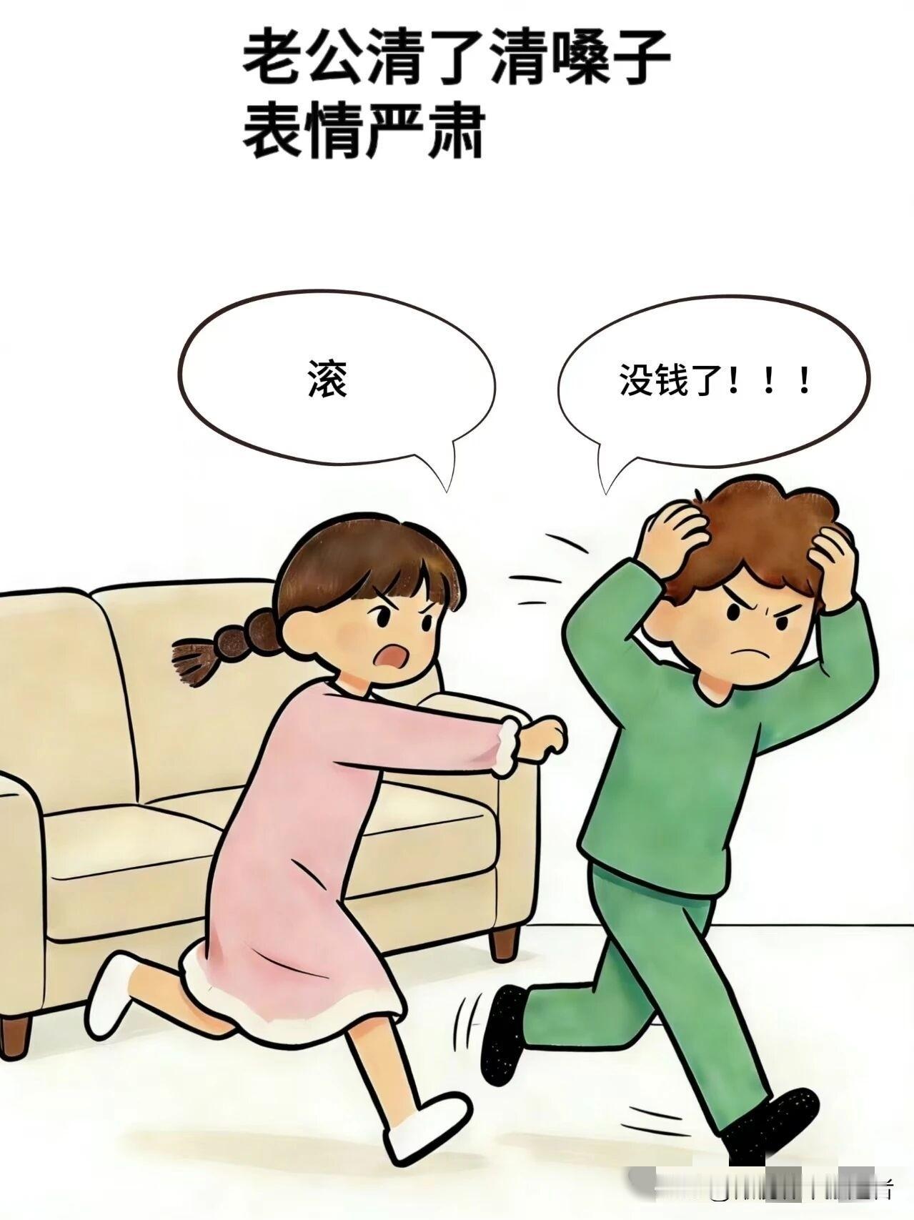 趣味漫画:老公:老婆我心里有三个字想对你说,老婆:我知道了,别说了,老公:不行,必须要说,老婆:那就说吧,老公:没钱了,老婆:滚