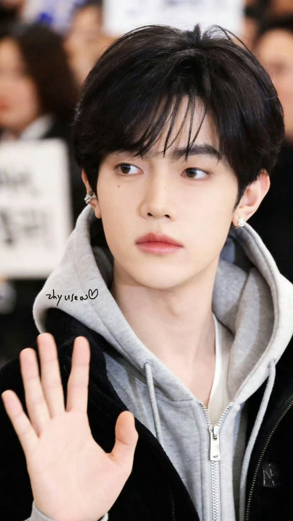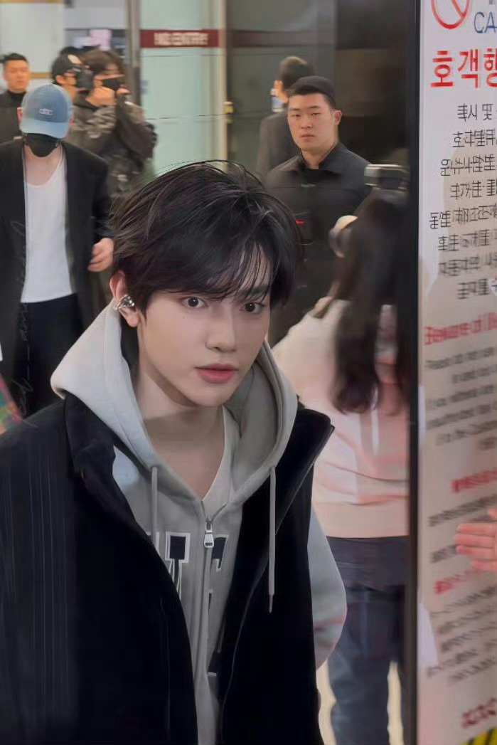 章昊今日机场路透,浅灰连帽衫+黑丝绒马甲,清爽的学长