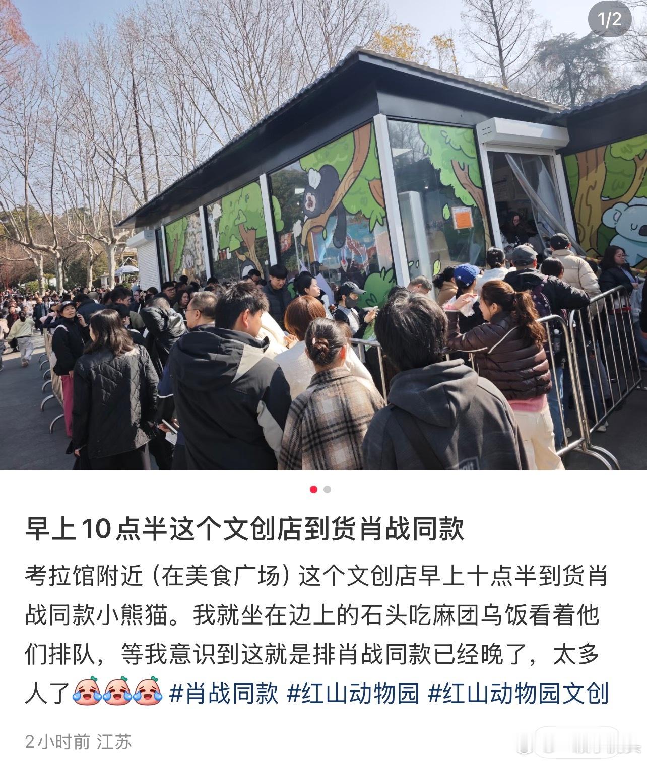 肖战带火红山动物园小熊猫玩偶考拉馆附近(在美食广场)这个文创店早上十点半到货肖战同款红山小熊猫,门口全是排队要买肖战同款的人线上线下全都卖爆了!