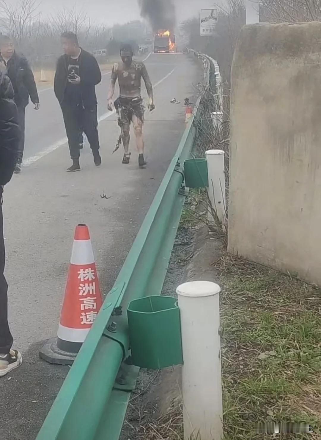 看鱼车司机这付尴尬样子,真是车祸猛于虎啊! 似乎身体被大面积灼伤了,过年了家人都盼着外出的人儿平安回家,司机必须小心谨慎! 看着这司机走路的样子,他的腿部不是熏黑那么简单的事情了,已经被高温烧伤,衣服都烧了,那里面的皮肤能好吗? 但愿司机不会有大事,好好治疗,也算买个教训吧!