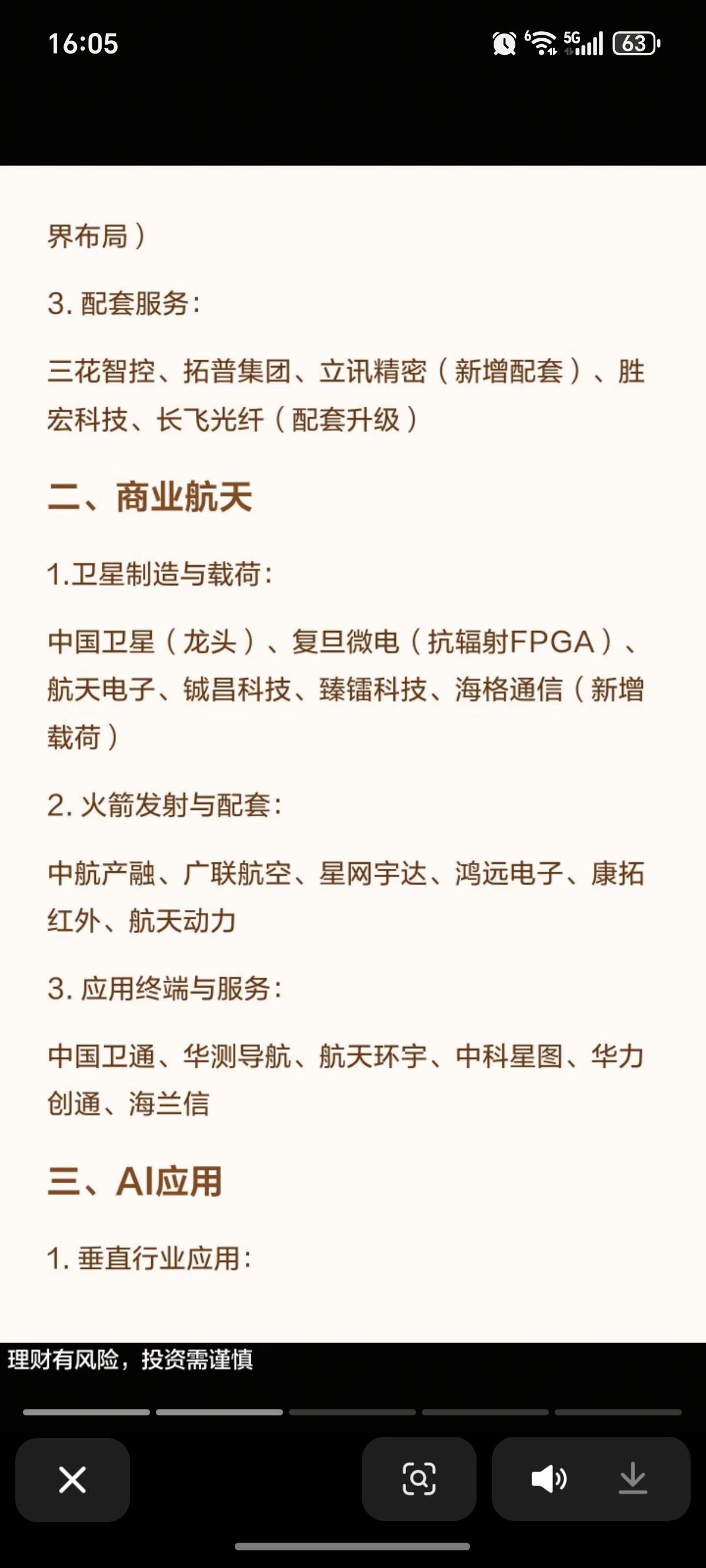 节后市场焦点:六大科技方向! 1.人形机器人 2.商业航天 3.人工智能AI应用 4.化工原料涨价 5.太空光伏 6.算力 相关核心龙头股: