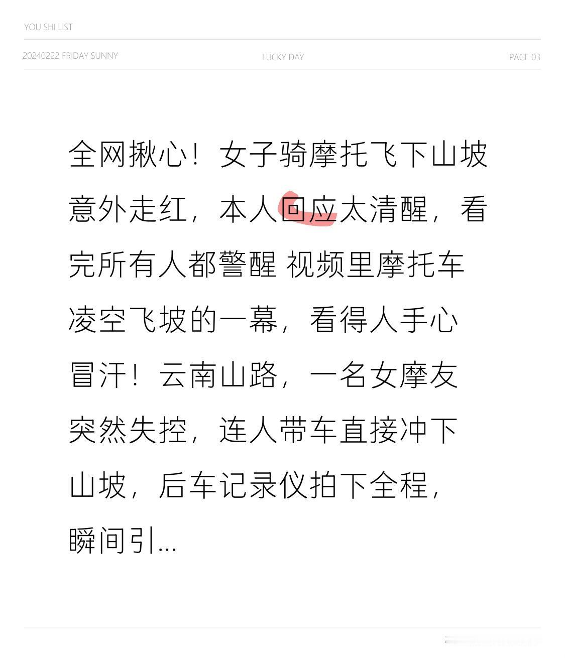 全网揪心!女子骑摩托飞下山坡意外走红,本人回应太清醒,看完所有人都警醒 视频