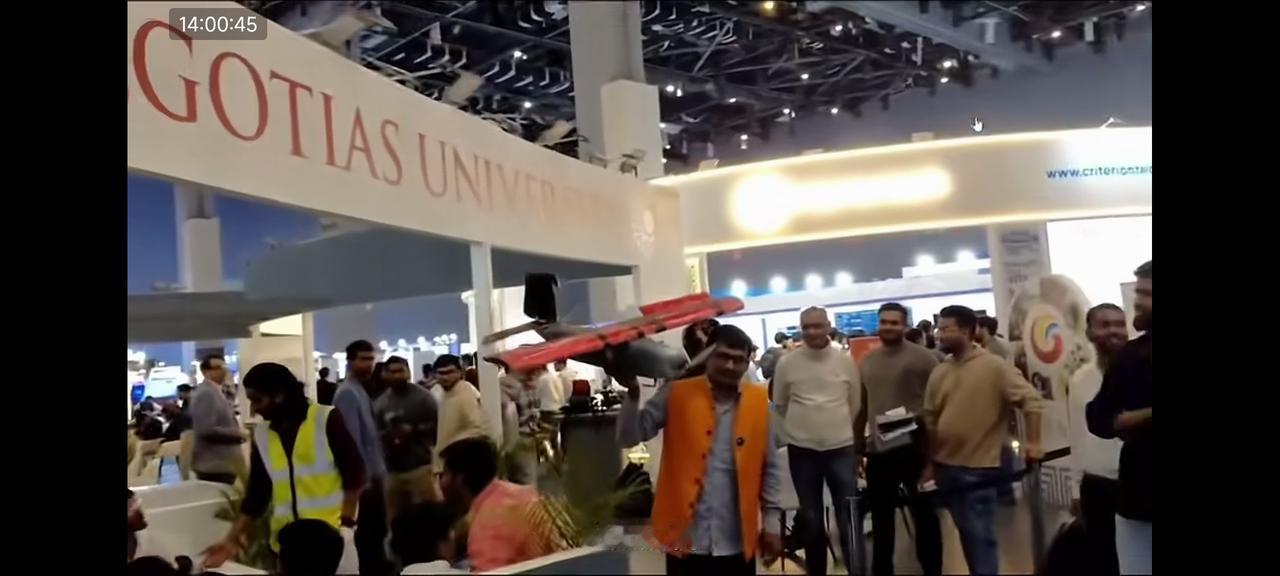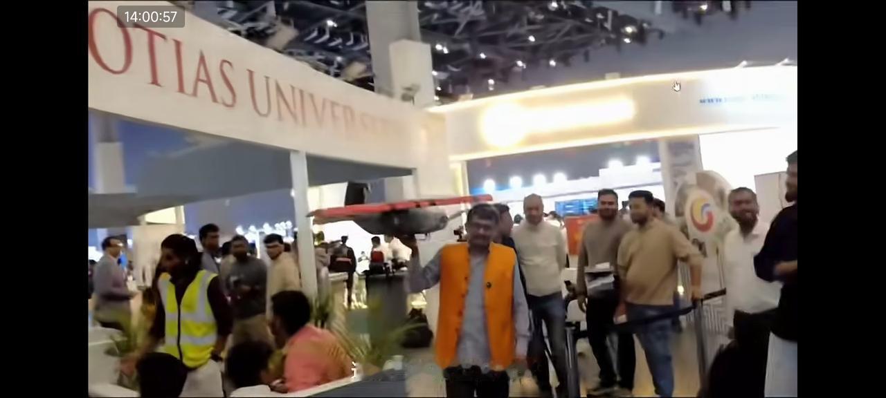 印度工作人员手里拿着无人机 大声的对着围观的观众大声说道,这是印度自己生产的AI无人机,这也是巴基斯坦没有的。 这句话他强调了两遍。 给大家来个特写,这架印度AI无人机用普通胶纸,橡皮筋,纸板凑合而成,做工非常粗糙。 这样粗造烂制的无人机也敢拿出来放在世界AI峰会上,佩服印度的勇气可嘉!