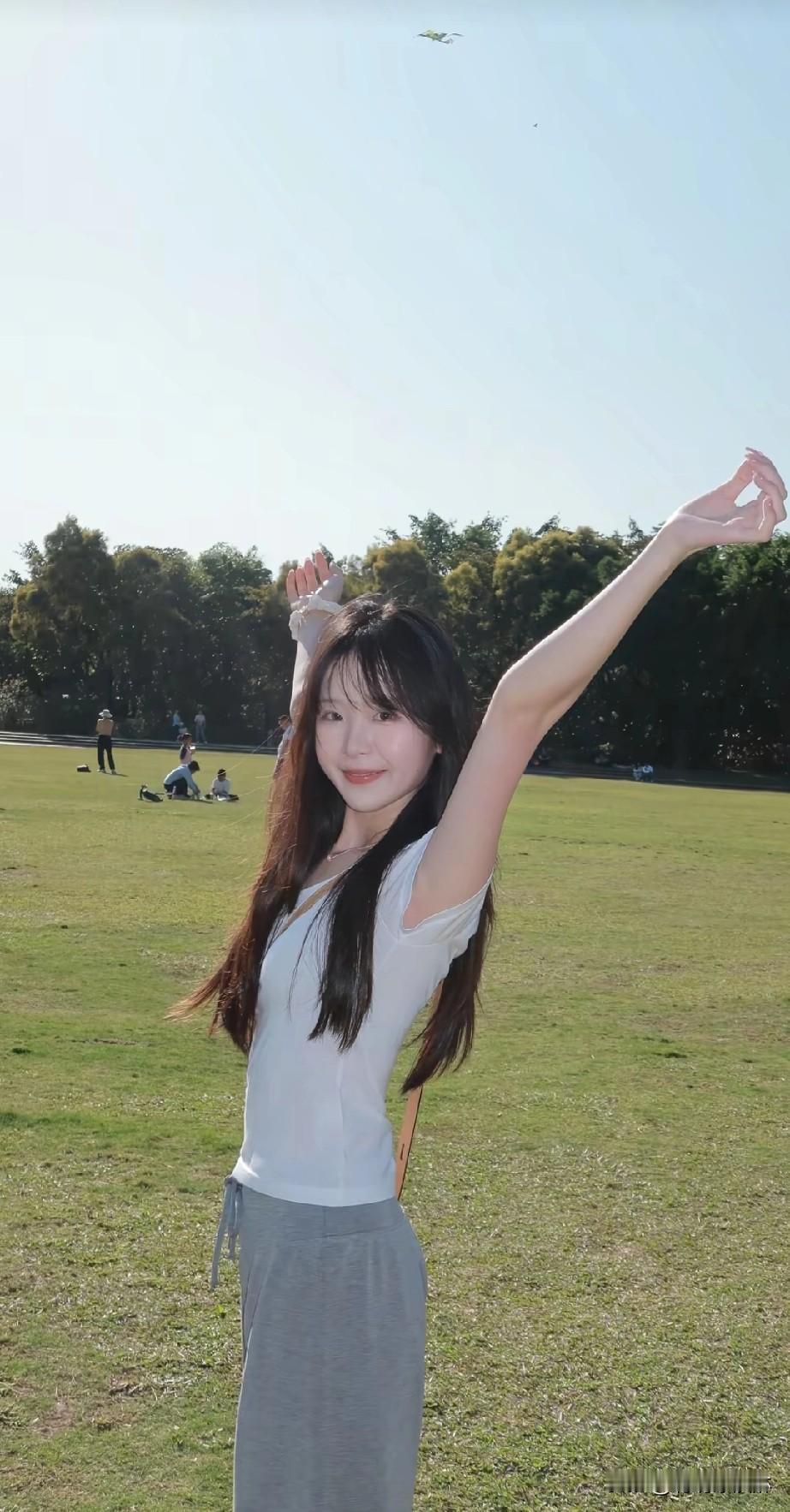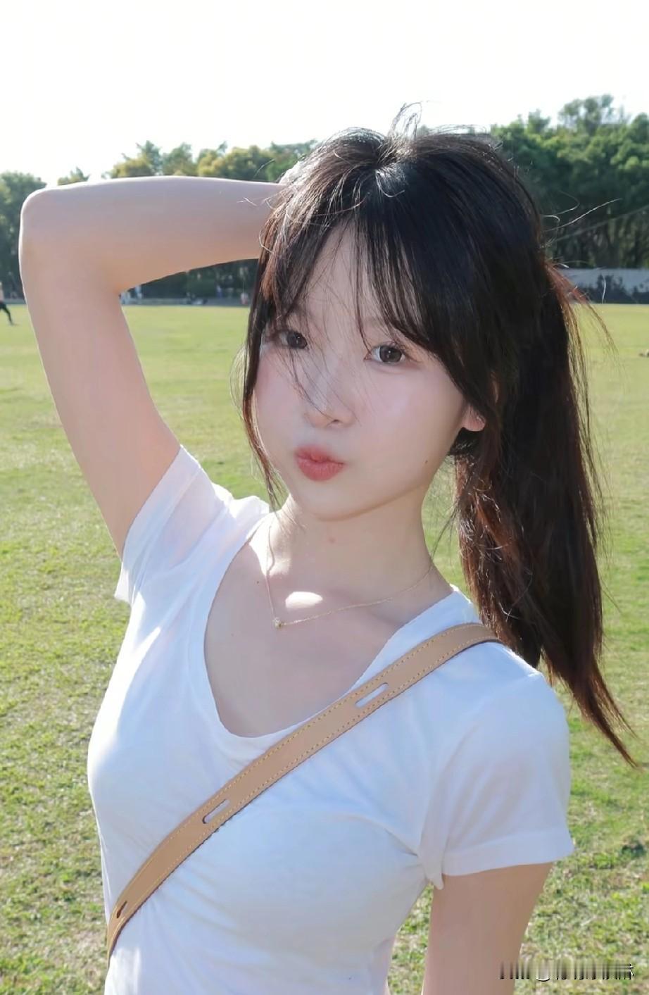 阳光下的少女,青春洋溢,微风轻拂发梢