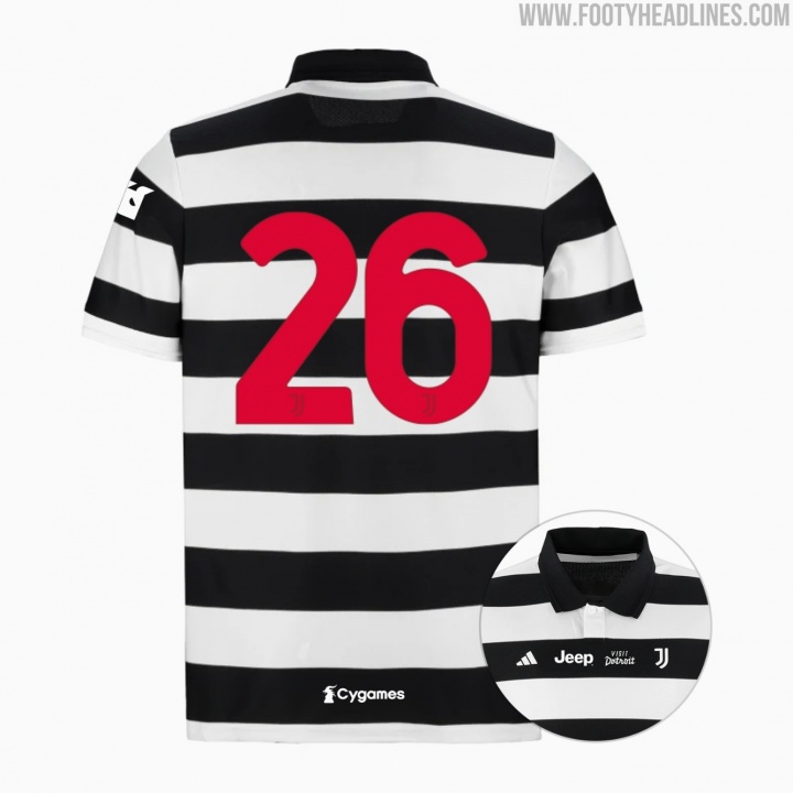 这款球衣的灵感源自1996-97赛季的横条纹赛前球衣设计,采用黑白横条纹设计,打破了尤文图斯俱乐部传统的竖条纹惯例。