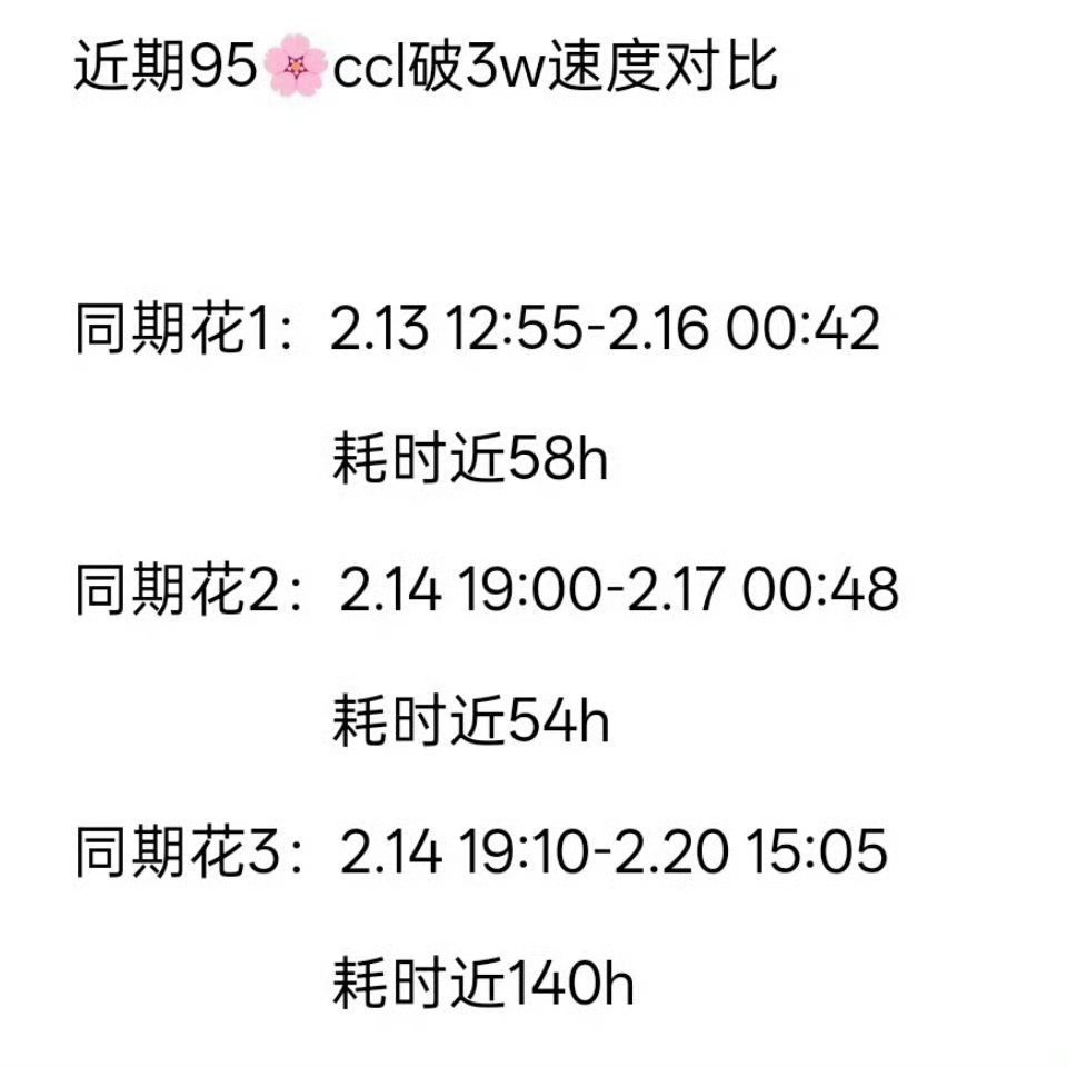 宋祖儿新年ccl耗时47h2min破3万+,是近期同期花ccl耗时最短,粉丝好活跃
