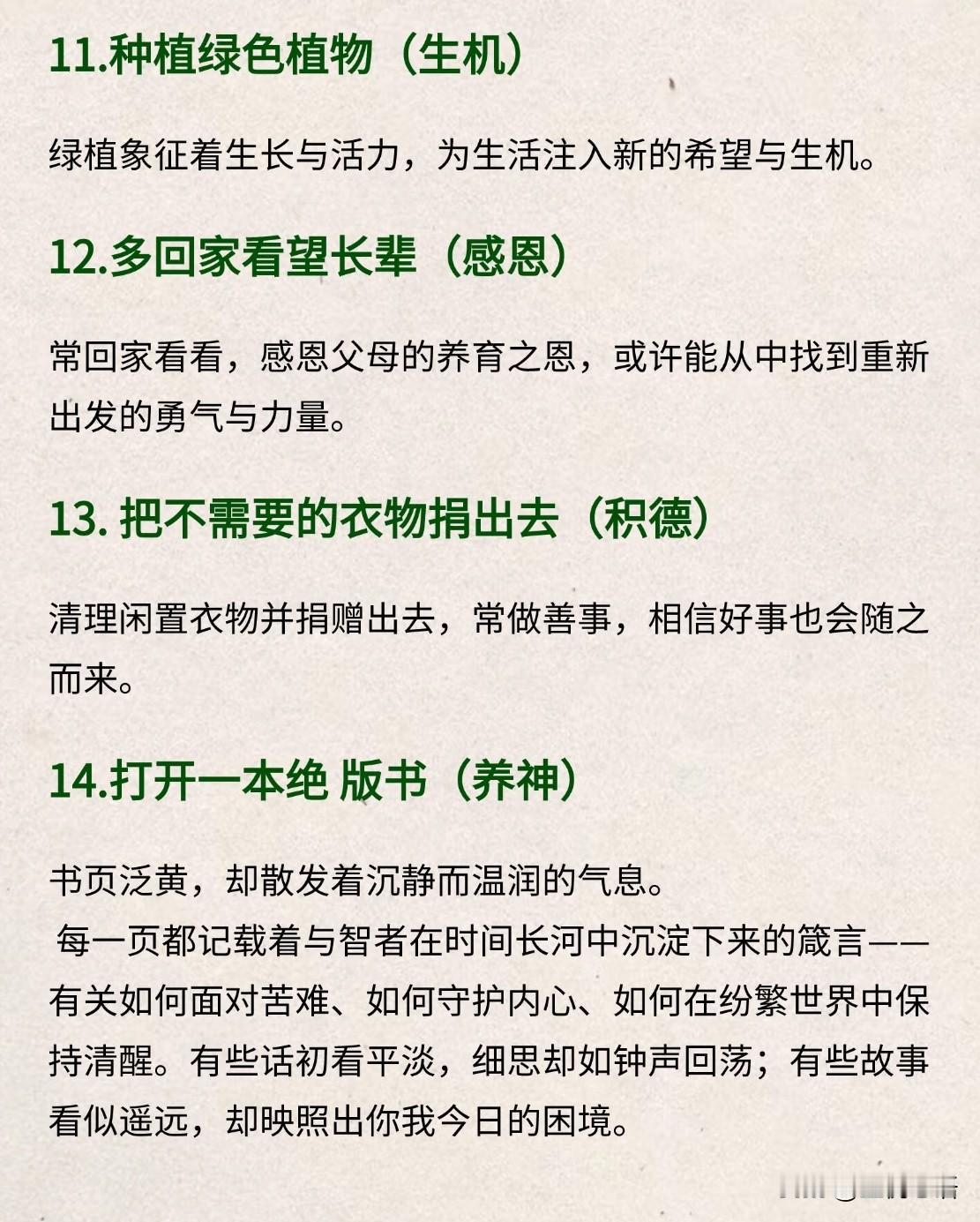 最近觉得日子不顺心, 干啥都提不起劲的朋友,看过来! 真的不用搞什么花里胡哨的操作。 想转运,就从身边随手能做的小事开始。 头发长了就去剪一剪, 清掉乱糟糟的“烦恼丝”。 别总窝在家里闷着, 多出去走走, 老话都说“走运走运”, 走出去才有运。 家里不穿的旧衣服, 收拾收拾捐出去, 清了空间也攒了善意。 有空多回家看看长辈, 陪爸妈说说话, 家人的暖意最能养人。 其实哪有什么凭空来的好运。 不过是你把自己的状态理顺了, 日子才会慢慢顺起来。 你好好对待生活, 生活自然会给你好的回馈。