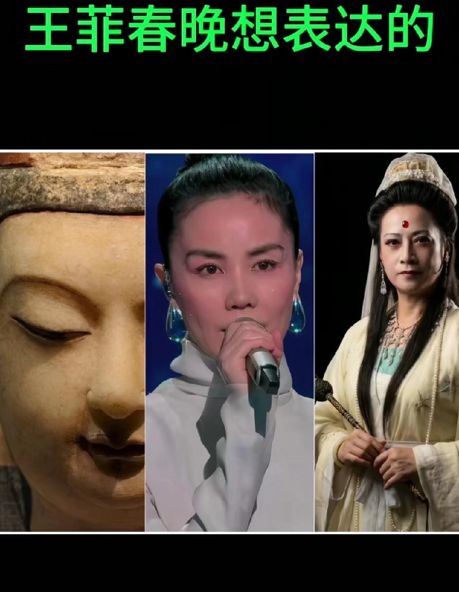 王菲春晚造型一出来,很多人都惊了。 那眉毛像古佛,耳坠似净瓶水滴,一股子“妙音天女”的禅意。 这不单是美,更是把千年文物搬上舞台。 她的出现,让我们突然意识到,原来中式审美可以这么玩儿,还这么酷。 王菲总能这样,不用力过猛,反而以一种“松弛感”,把老东西玩出新花样,再引爆全民热议。 别总盯着西方潮流,老祖宗的好东西,你可能真没看懂。