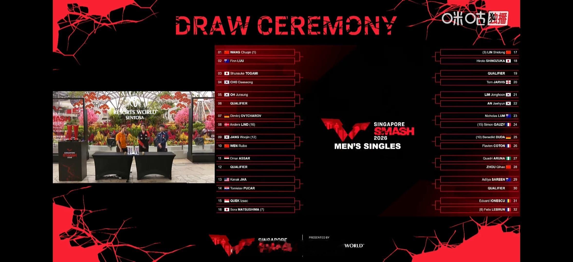 男单 大种子大部分都是外协松岛也是经常掉到小王那区。。首轮🇦🇺;鸟你来了。。