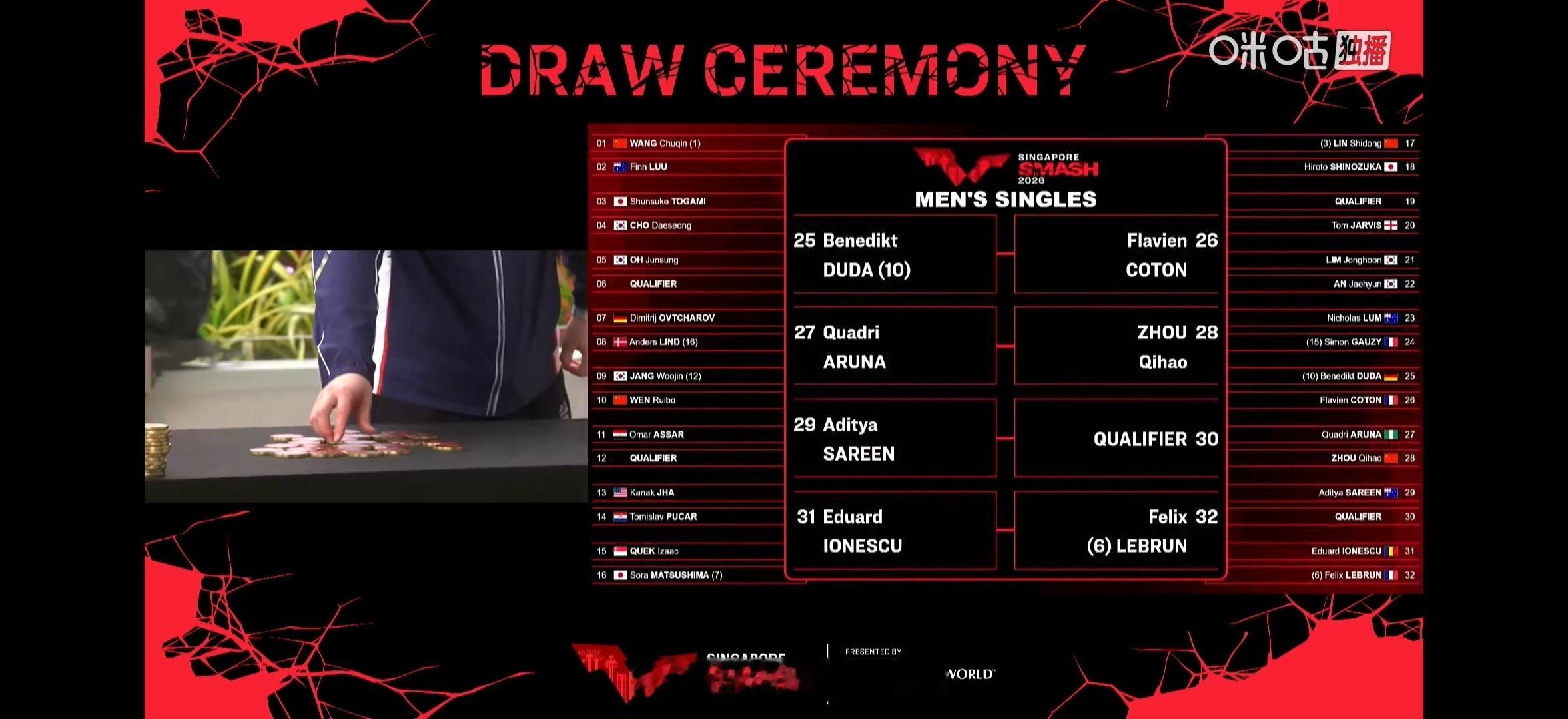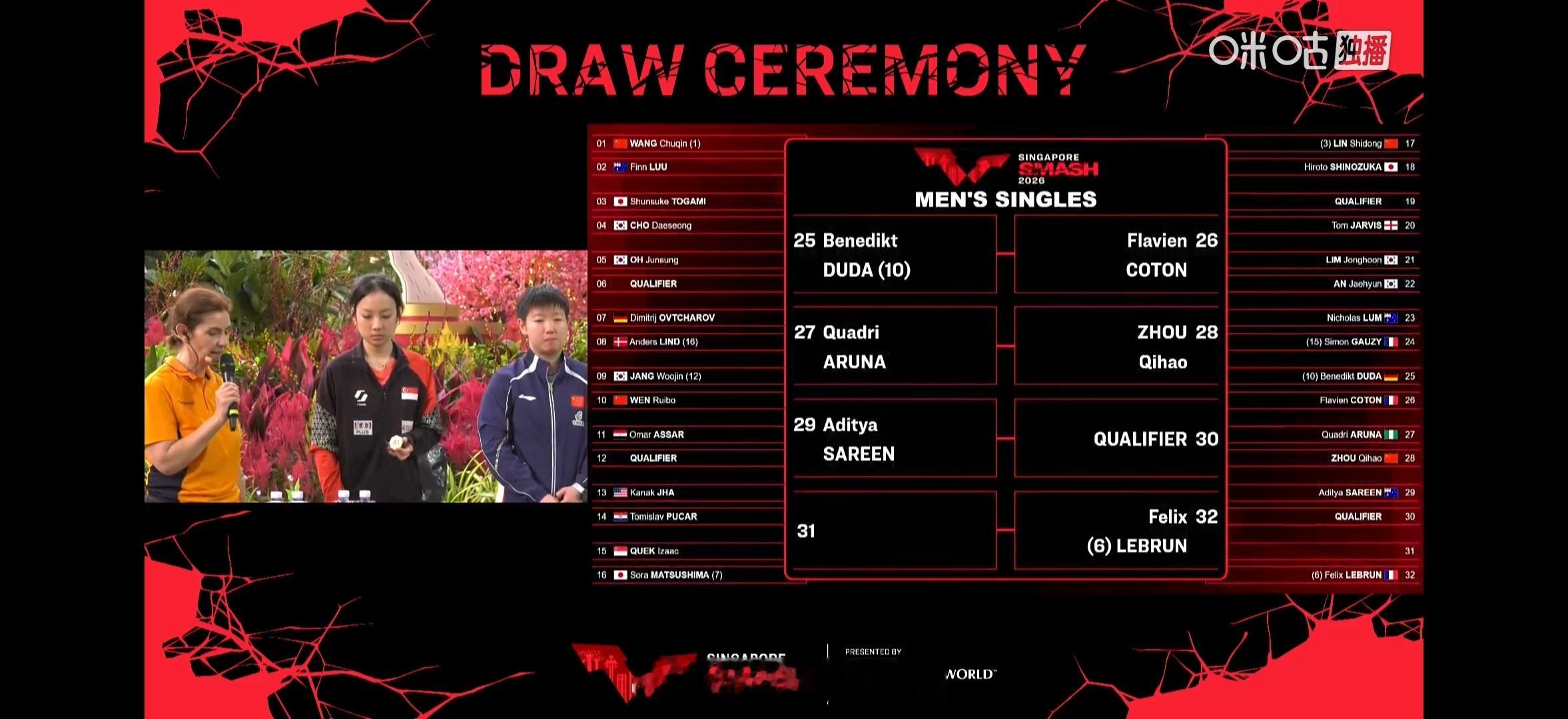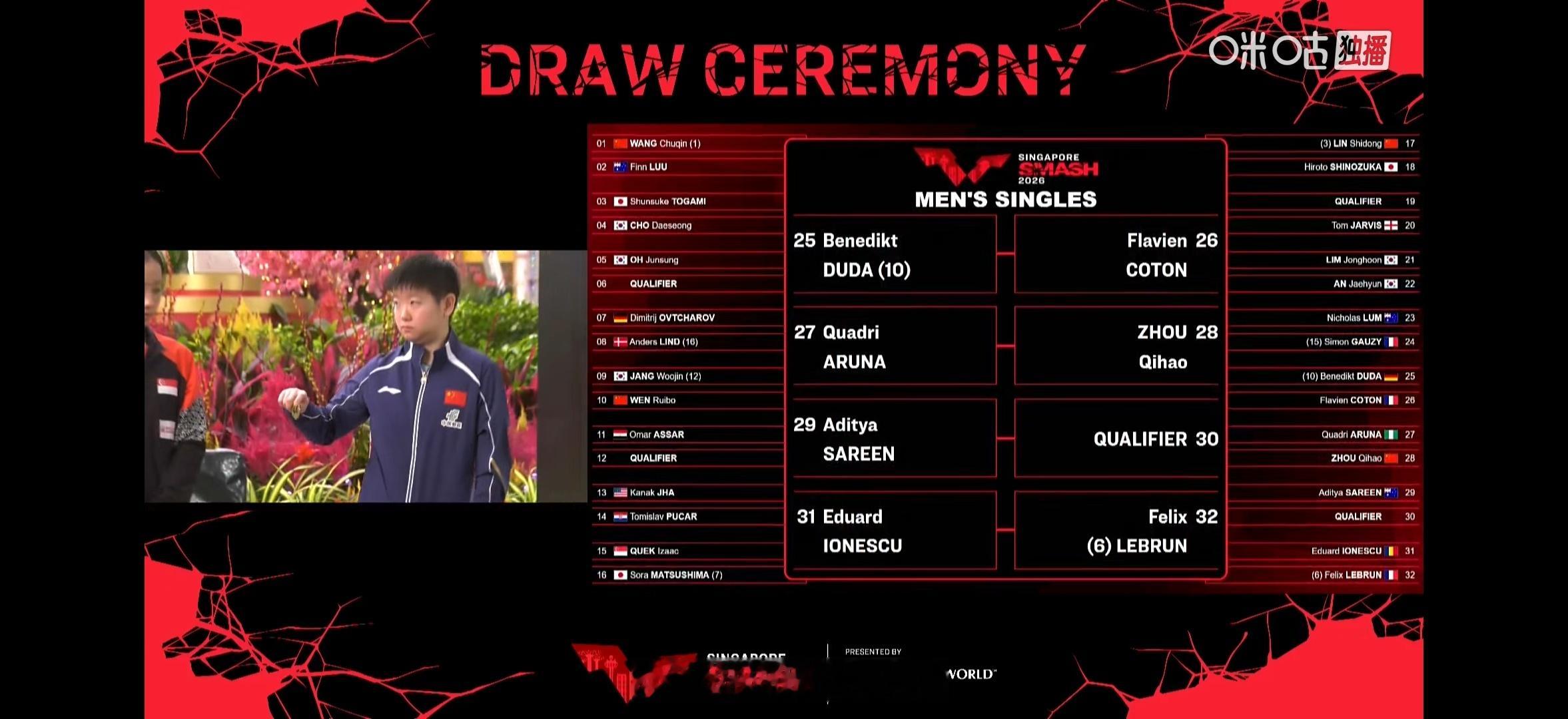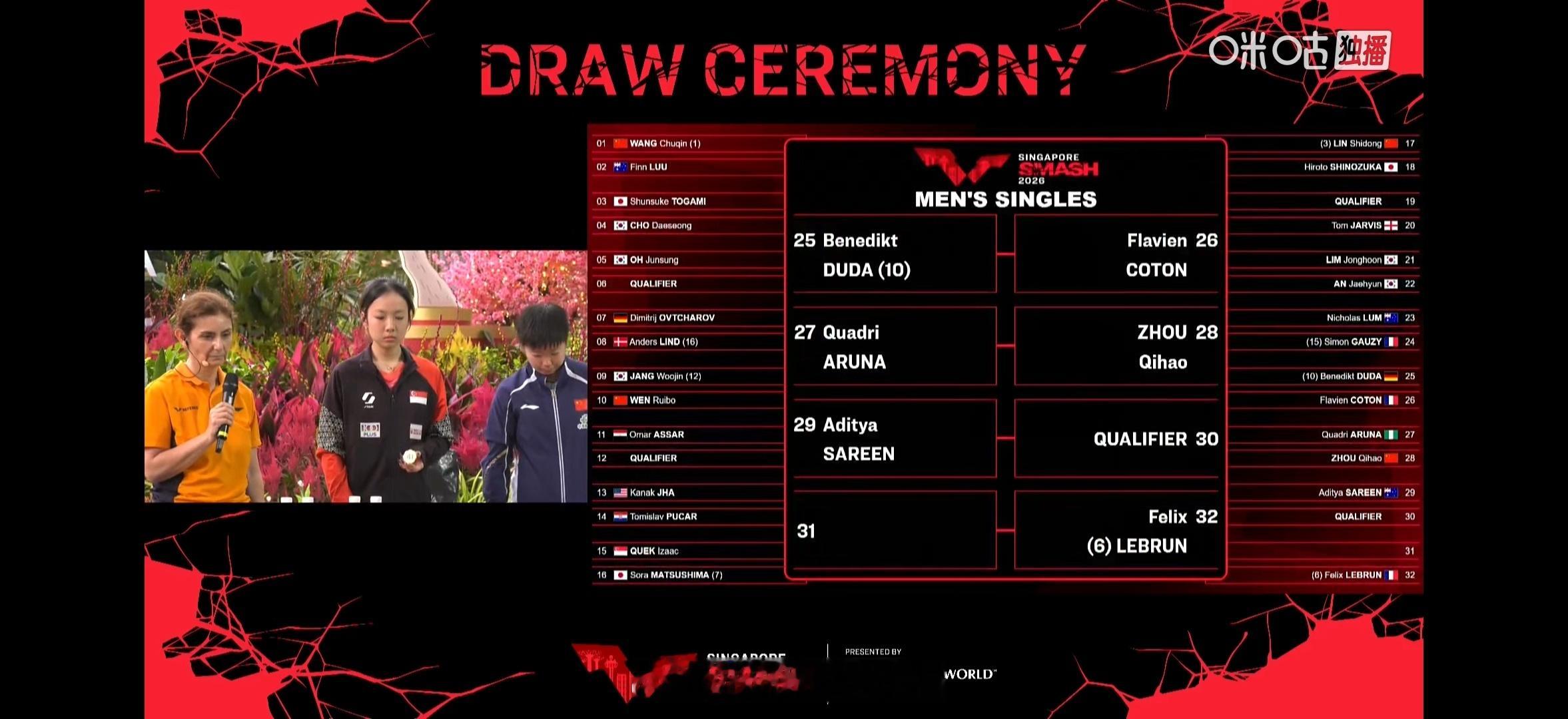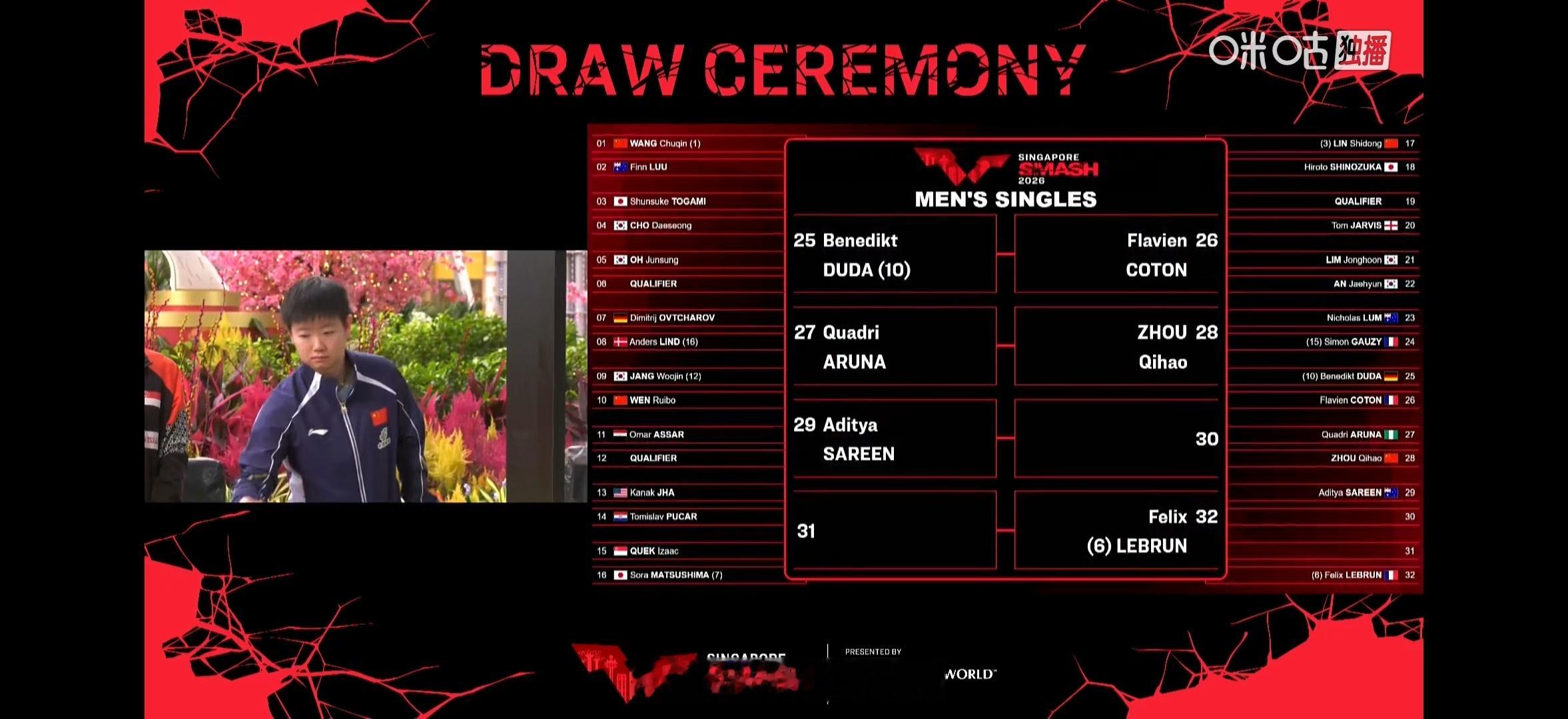 男单 大种子大部分都是外协松岛也是经常掉到小王那区。。首轮🇦🇺;鸟你来了。。这次小王半区的队友比之前多、、两个半区很平均🤣【存一些可爱豆包妹🥺】