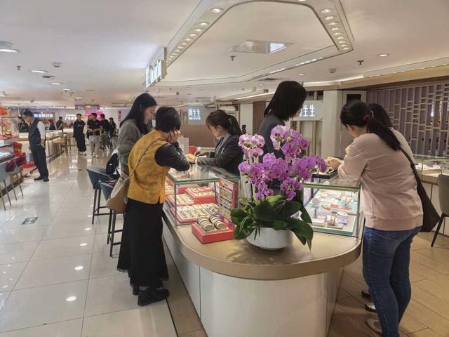 北京路商圈一金店店员介绍,有顾客一次性购入近8万元金饰用于日常佩戴。刚送走一波客流,她一边整理货品与销售数据,一边抽空简单用餐。