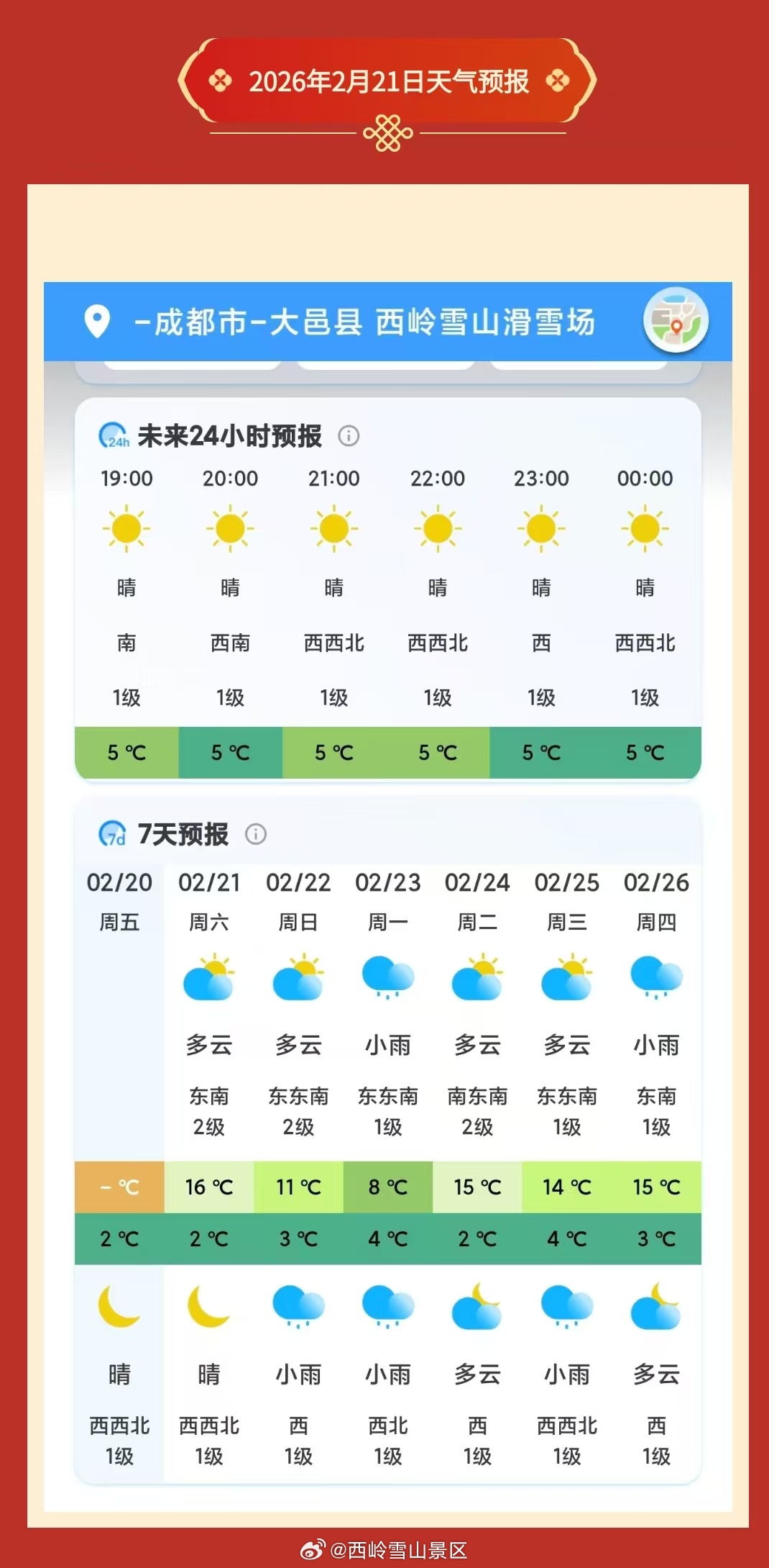 西岭雪山2月21日(初五)气象预报#西岭雪山#