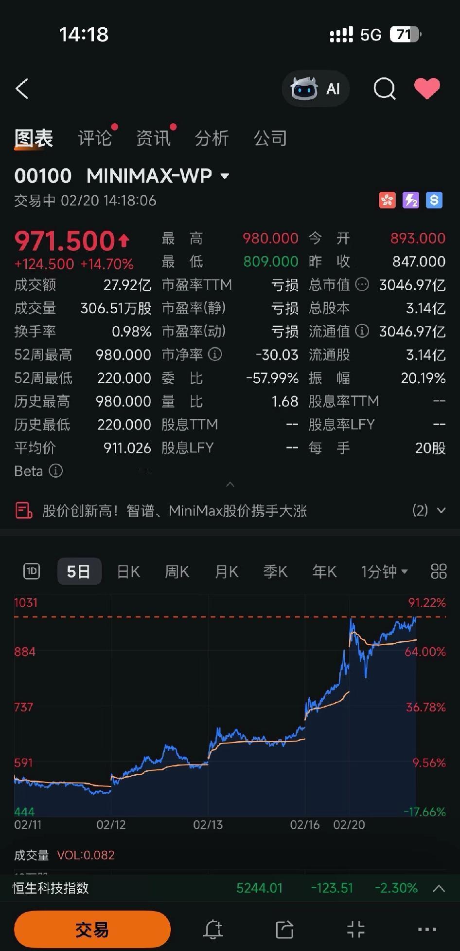 太恐怖了!!! 3000亿了 年后刚开盘智谱和MiniMax双双新高 突破30