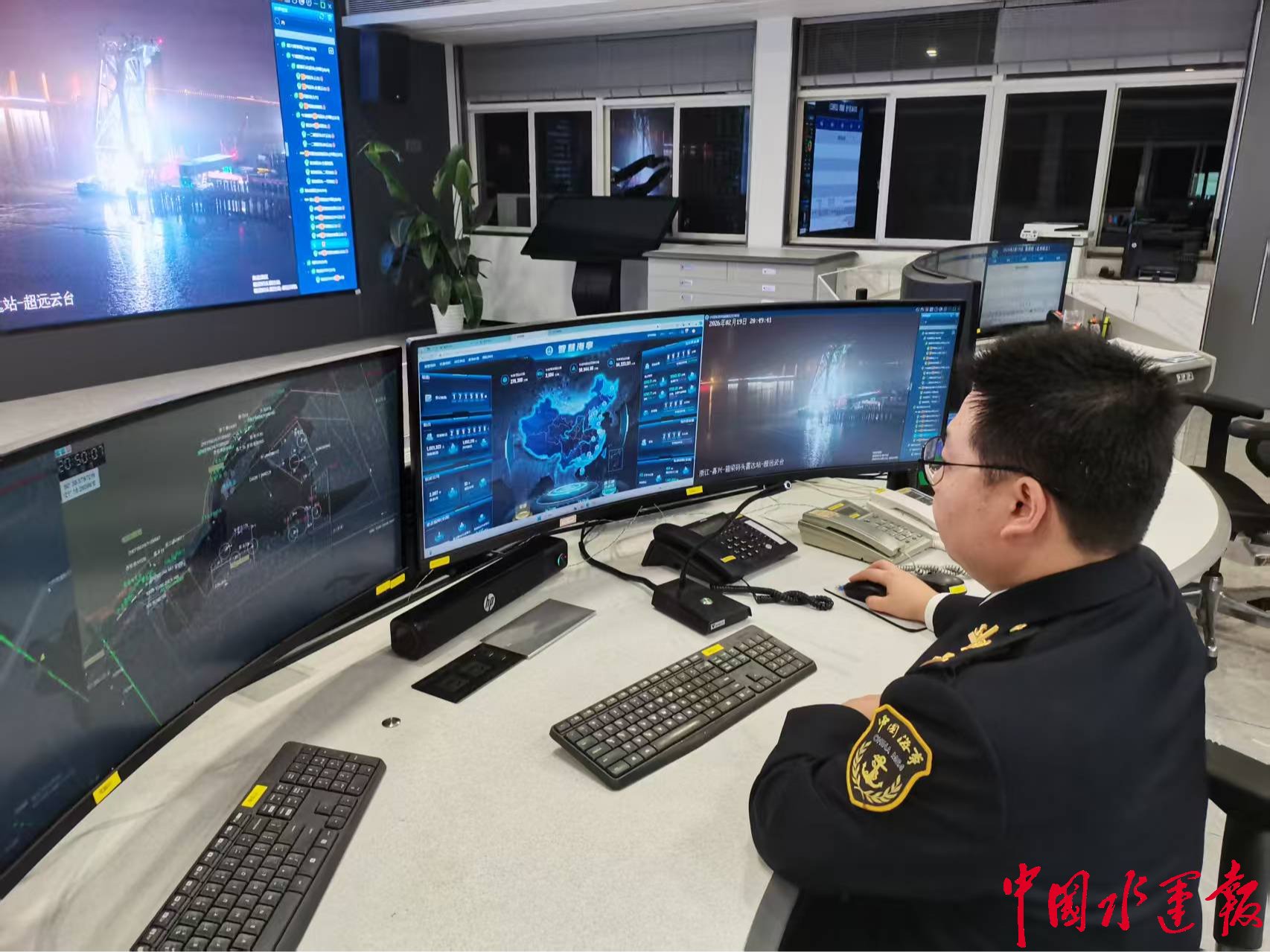 “嘉兴交管,‘明州502’轮15分钟后过东报告线,直靠嘉电两期,本航次载煤4.5万吨,请求进港。”在嘉兴海事局船舶交通管理中心,值班员紧盯屏幕,依托VTS系统和智慧海事综合监管平台,对进出港的能源运输船舶实行24小时动态监测。船舶轨迹、AIS状态、水域通航情况……所有信息一屏掌控。