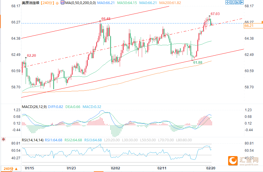 周五(2月20日)欧盘时段,原油市场呈现小幅走跌态势,但整体价格仍徘徊在六个月以来的高点附近,有望实现三周以来的首次周度上涨。北京时间19:33,具体报价如下:布伦特原油期货报71.39美元/桶,下跌51美分,跌幅0.7%;WTI原油报66.13美元/桶,下跌27美分,跌幅0.41%。