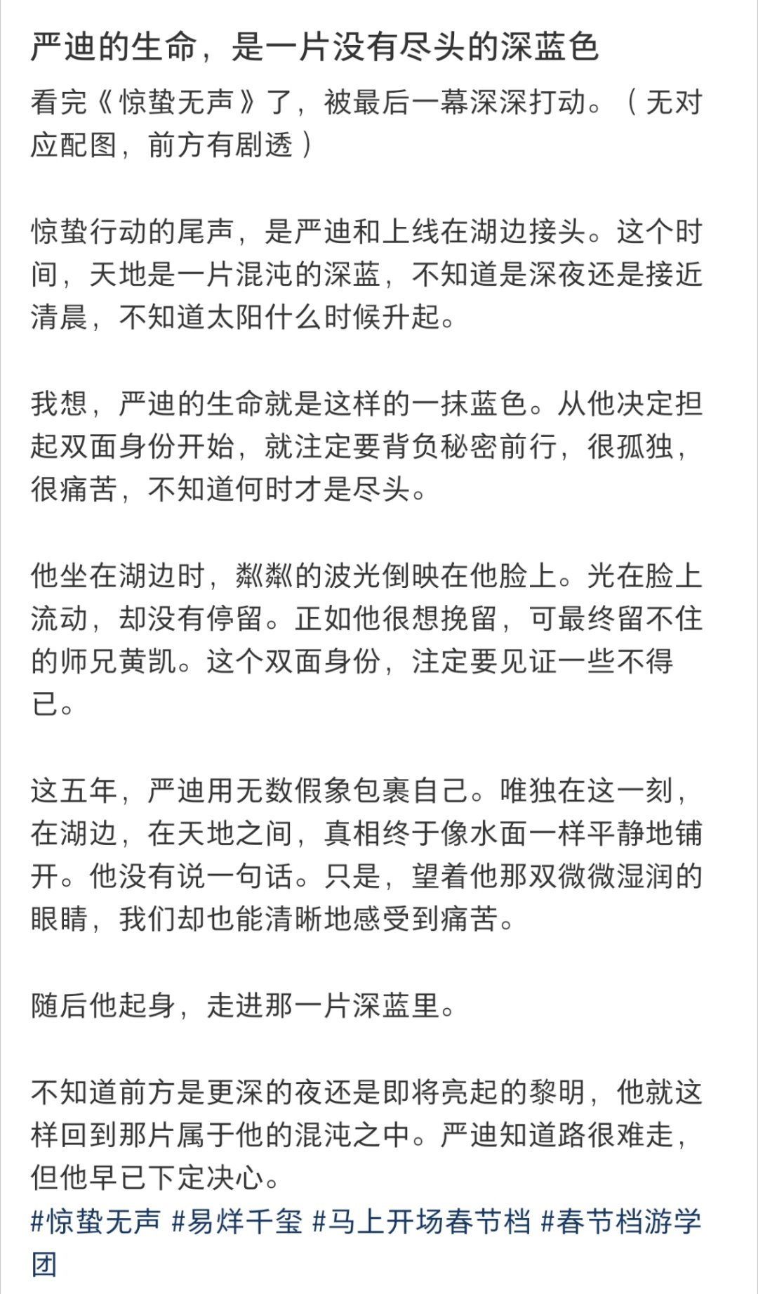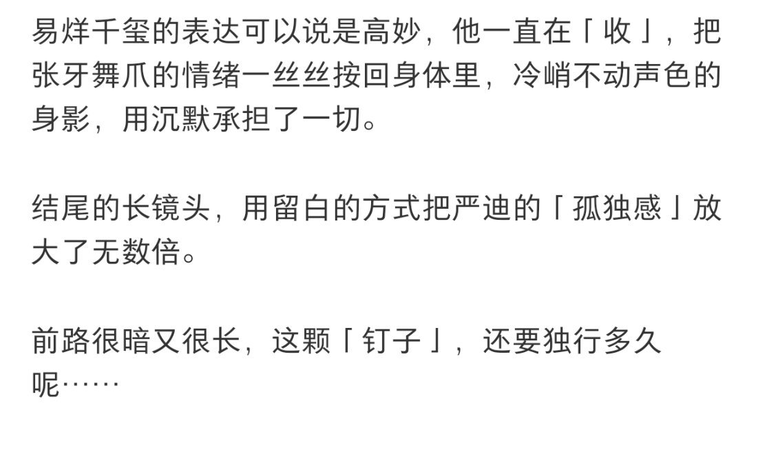 易烊千玺是有点演技症在身上易烊千玺完全戏眼来的,最后二十分钟让人直呼精彩,高光和升华全由严迪完成