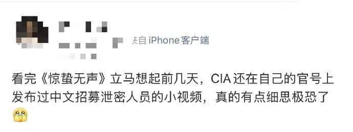 惊蛰无声细思极恐 《惊蛰无声》让人细思极恐,CIA官号发中文招募,间谍或许已潜伏