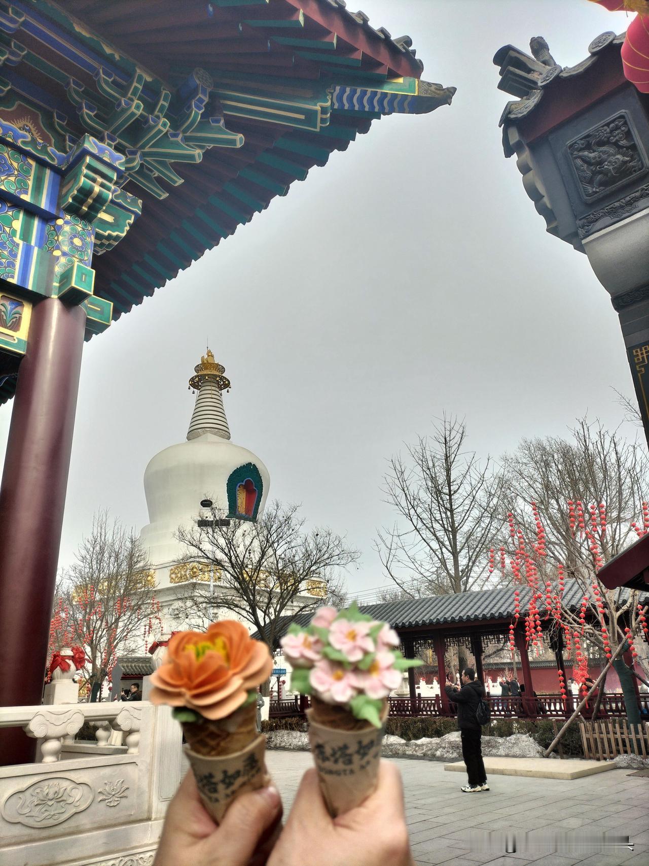 春节游沈阳,白塔、南塔、东塔、北塔,一日四塔,将西塔留下点儿念想,以后再补。东塔最热闹,吸引游客的点儿挺多,花朵冰淇淋好看但口感还得提高,素面好吃还可免费续面,专程去吃都值得。北塔最有宗教仪式感,祈福的红灯笼很出片。南塔只能绕塔一圈,地方太小,专程一游没必要。