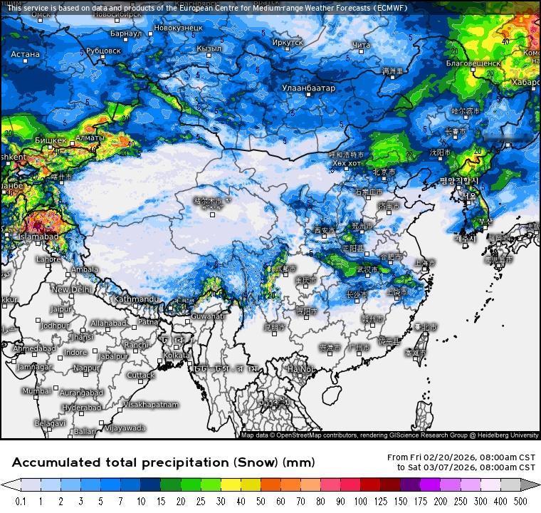 可以确定的是,未来一段时间,南方的降水会非常的多,累计降水量也很大,部分地区不排除会有暴雨。同时,由于长期环流的不确定性,图3-4的降雪预报随时都在变化,目前看看就好。