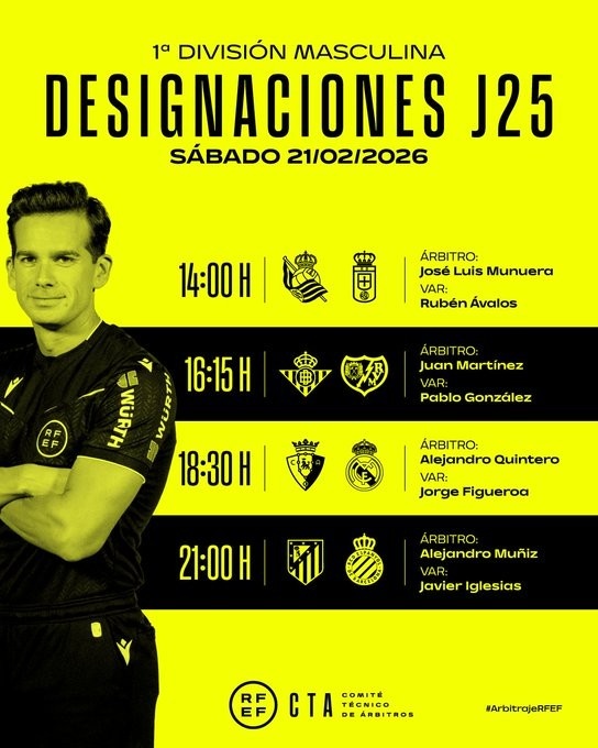 直播吧2月20日讯北京时间2月22日1点30点,西甲第25轮皇马即将在客场挑战奥萨苏纳。《马卡报》报道,本场的当值主裁判为金特罗·冈萨雷斯,VAR裁判为乔治·菲格罗亚。