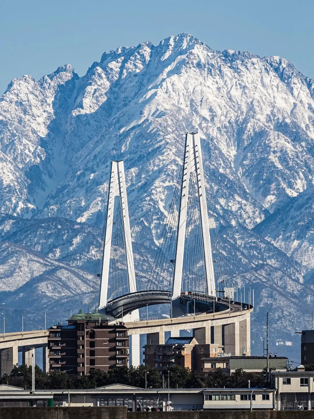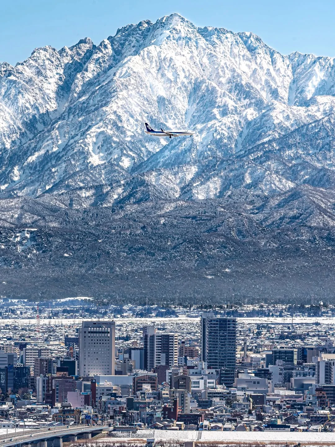 在日本,很少有一个地方, 能让你在一趟普通电车上,同时看见—— 终年积雪的3000米群山🏔️、平静的海🌊、城市的天际线,还有掠过山顶的飞机。 全是实景,真的不是特效。 这就是富山:不是景点,却处处是景。 其实,只要你坐上富山的地方电车🚆(比如富山地铁或冰见线), 往山区或海岸方向走一段,这样的画面就会自然出现在窗外。 在这里,立山连峰是永不缺席的背景板。 无论你是在坐车、散步、看海,抬头就能遇见它。 不止电车,富山的许多角落都自带雪山滤镜—— 城市观景台、跨海大桥、海边孤石…… 都是天然取景位,晴天时连雪顶的纹理都清晰可见📸。 别再只挤镰仓了,富山这份自带雪山背景板的浪漫,真的值得你来一次💛