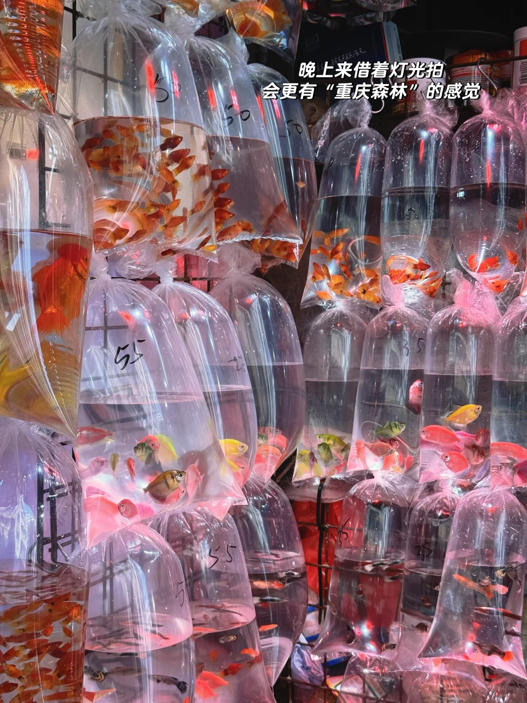 袋装金鱼、霓虹鱼缸,拍照很有港风氛围(夜晚更美)