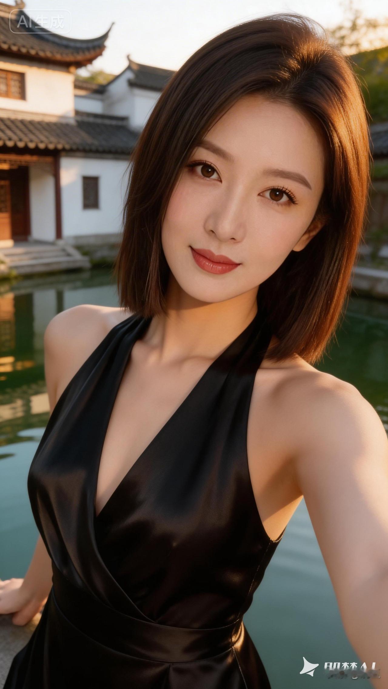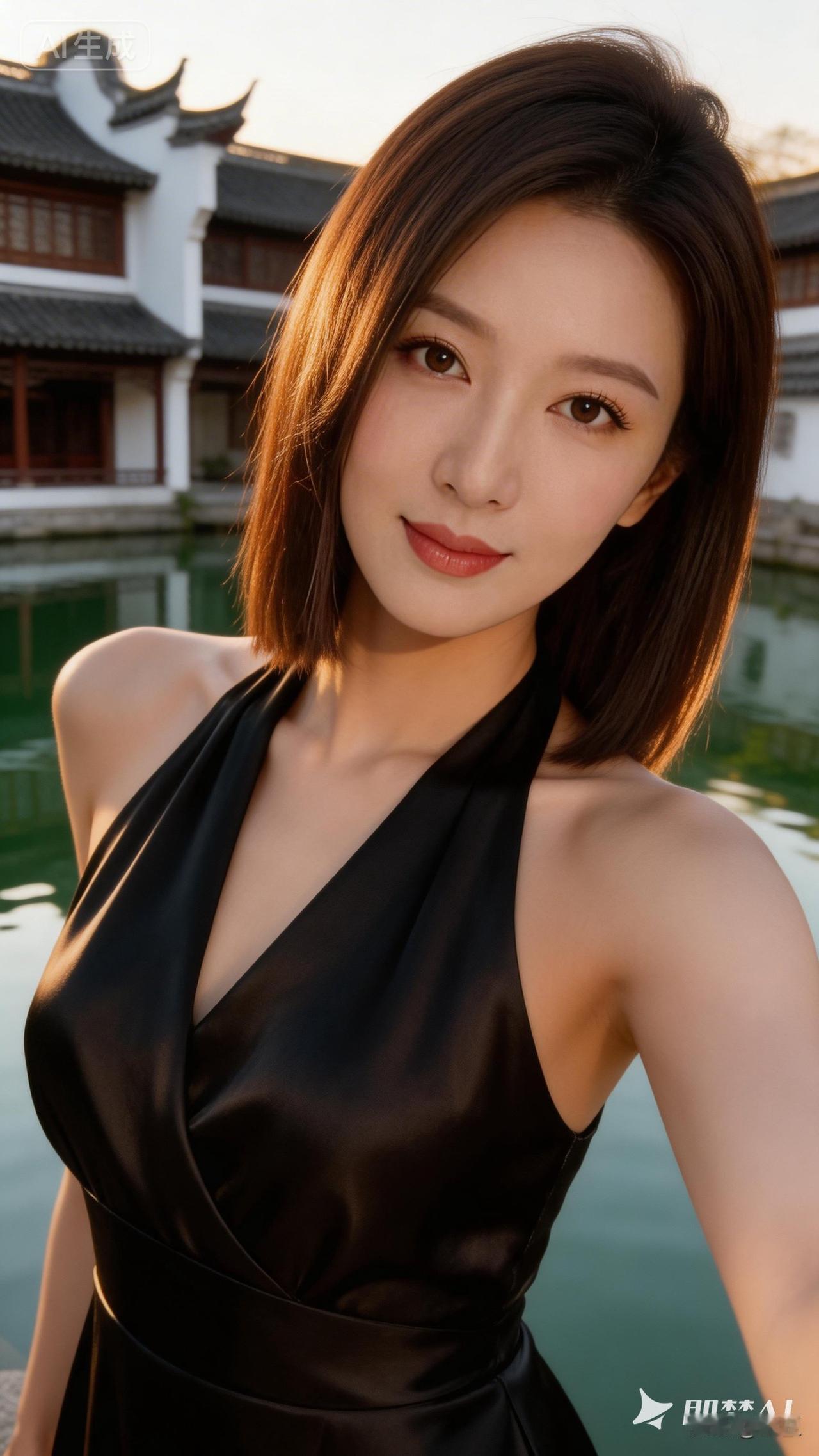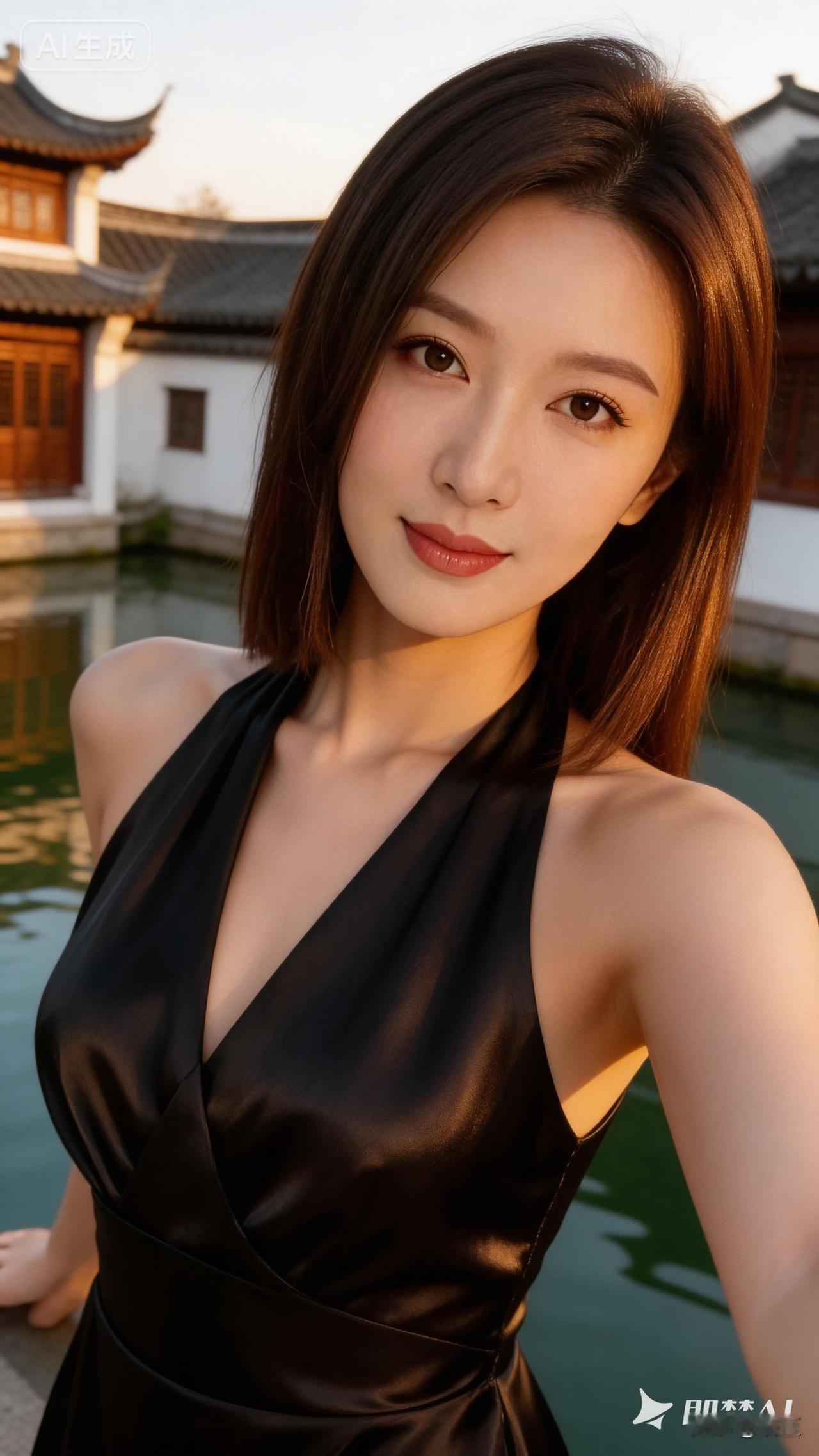 优雅黑裙,东方韵味,梦回江南水乡