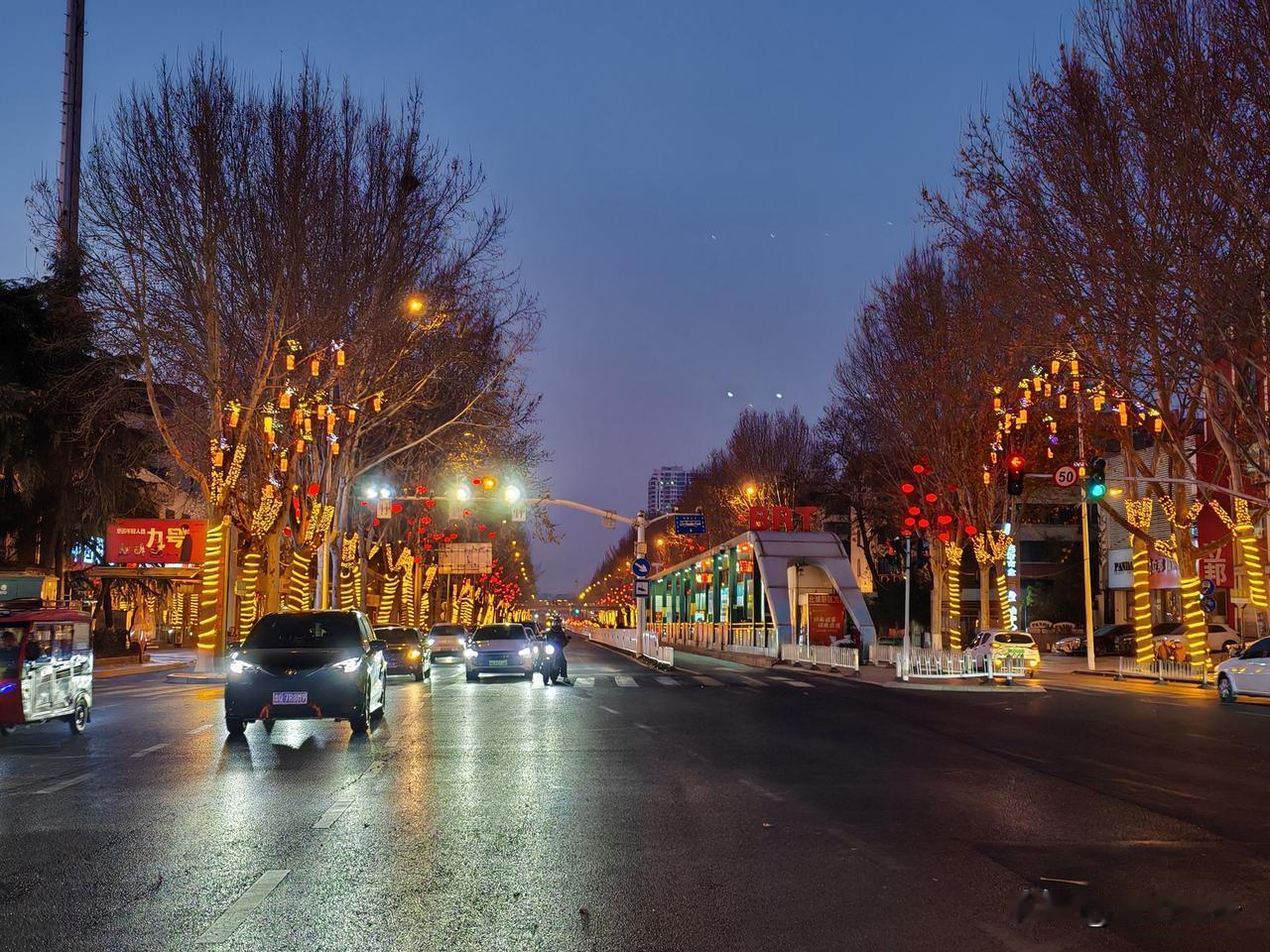 大年初四错峰自驾北上,目标—山东! 初四的高速路没有大卡车,看见的都是小轿车,虽也不少但一路畅通无阻,甚是好开,上海出发五个多小时就到临沂市。 来到临沂先吃美食,有的网红店还没有开张,查到“老磨坊”今天刚开业,晚饭就在那解决啦。 临沂正处于春节9天免费期(2月15日至2月23日),主城区公交集团运营的常规线路均可免费乘坐,无需刷卡或扫码,直接上车即可。 晚上乘免费的BRT三站到“老磨坊”吃晚餐,一份套餐77元(羊肉汤、凉拌羊脸、炒土豆丝,四个饼),单点麻辣牛肉条38元(团购价),羊肉汤真好喝一点都不腥,拌羊脸也很好吃(从未吃过),两人吃不完,最后打包。 晚上再次乘免费的BRT坐四站到王羲之故居,晚上60岁以上半价(白天70岁以上免票),晚上全价39元(白天20元)。 书圣出生地,有洗砚池、鹅池、曲水流觞等,书法爱好者必到,古建园林雅致清幽。 灯火兰山·新琅琊,是一个免费进入的国潮古风街区。 华灯初上时,整个街区的红灯笼和古建筑在光影下非常壮观,随手一拍都像是古装剧剧照。 街区里汇集了各种小吃,街区全天开放,但最佳游玩时间是晚上6点到11点。 周边有地下停车场,可免费停车4小时。 新琅琊是一个集看、玩、吃、拍于一体的夜游好去处,绝对能给你的临沂之行画上一个完美的句号。 这里的气候还没有上海冷,穿件厚外套,里面穿件薄内衣就行。