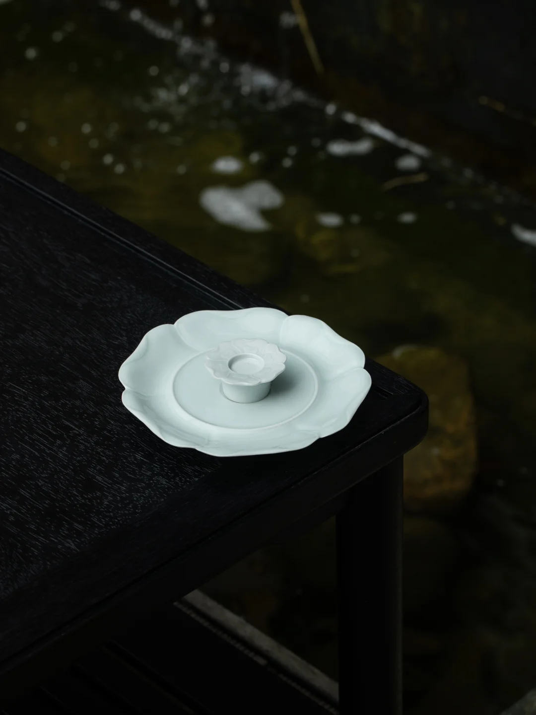灵感来自宋代定窑,形如绽放的葵花。它可作香插,也可拆作壶承或盖置,灵活百搭,是茶席上那个总能用得上的贴心配角。