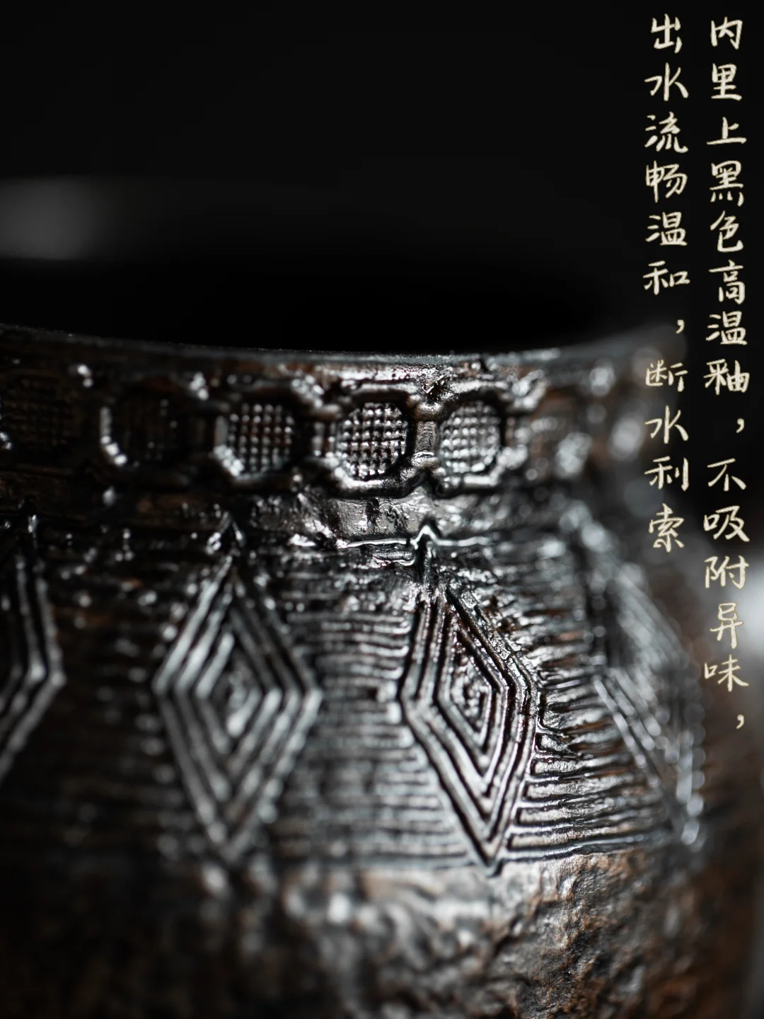器型古朴,仿黑陶质感,内里却是光洁的高温釉。用它匀汤,不吸味,出水流畅利落。握在手中,那份沉甸甸的质感,是对一杯好茶的郑重。