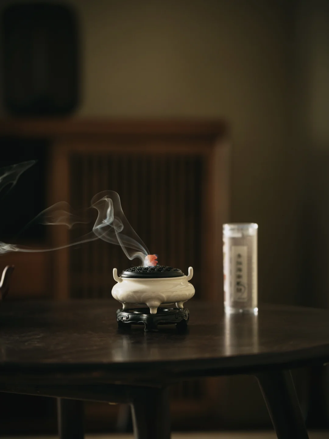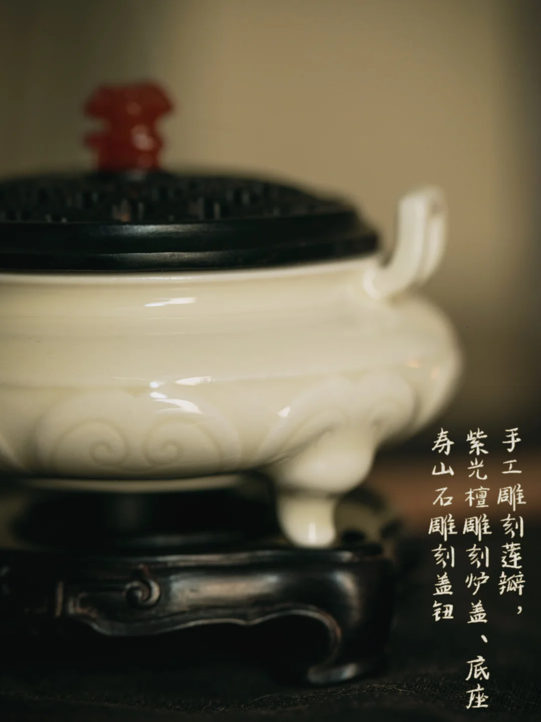 它立于茶席主位,是气场的担当。莲瓣雕刻秀雅,炉型扁稳,点一枚香片,烟气便如茶香般,缓缓弥漫开来,定下一席的基调。