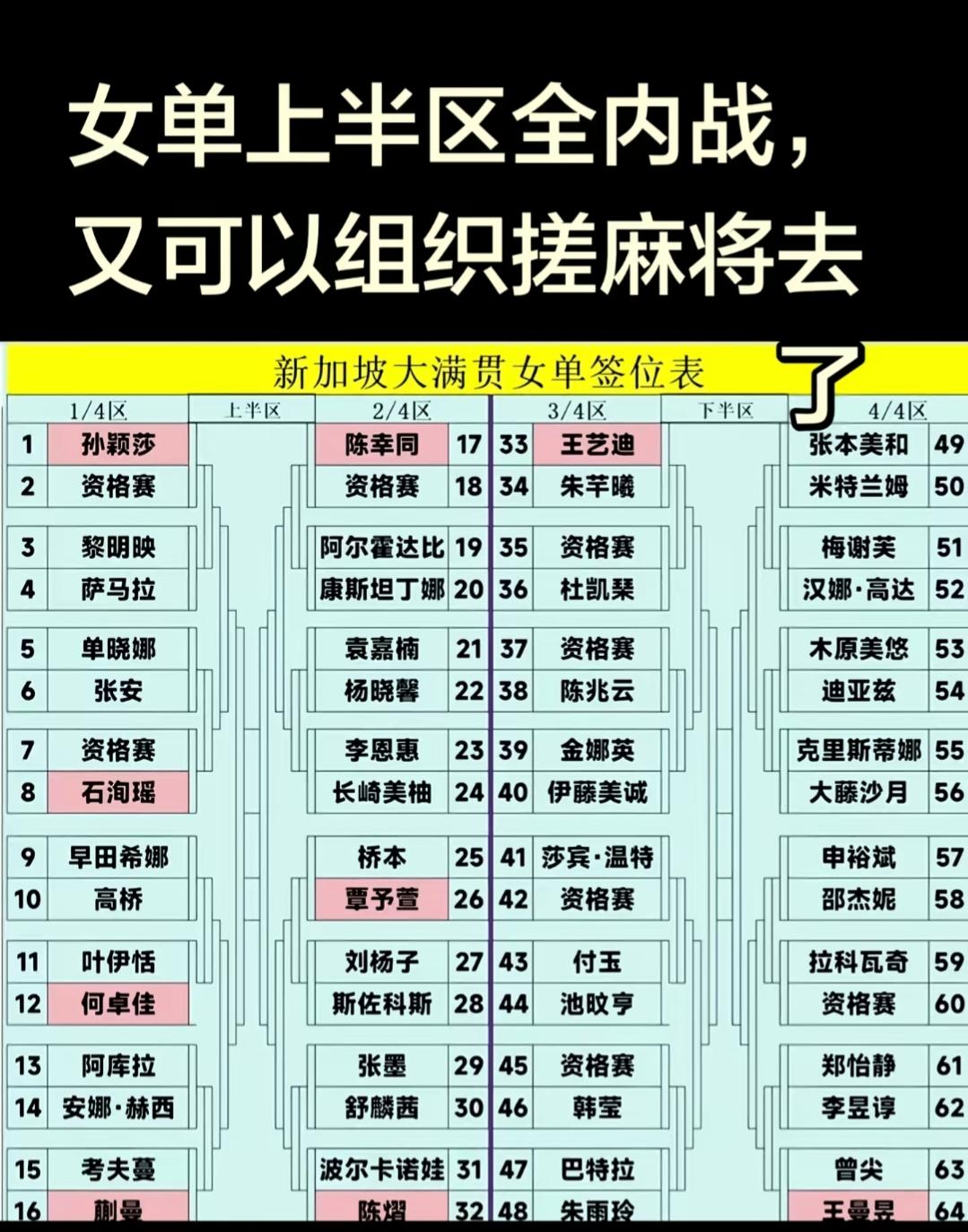 王曼昱遇上张本美和,这个签位,有人还要为她抱不平,其实就是变相觉得王曼昱打张本美和没胜算的意思吧? 王曼昱从来没有拜过张本美和,为什么还要有这个担忧呢? 要上洛杉矶,不应该是打谁都要有胜算的吗?张本,朱雨玲,桥本,蒯曼,都必须战胜啊! 谈养生签的人,都是对自己喜欢的球员技术的不信任吧?王曼昱现在势头正盛,相信她吧!这一站绝对没问题的!