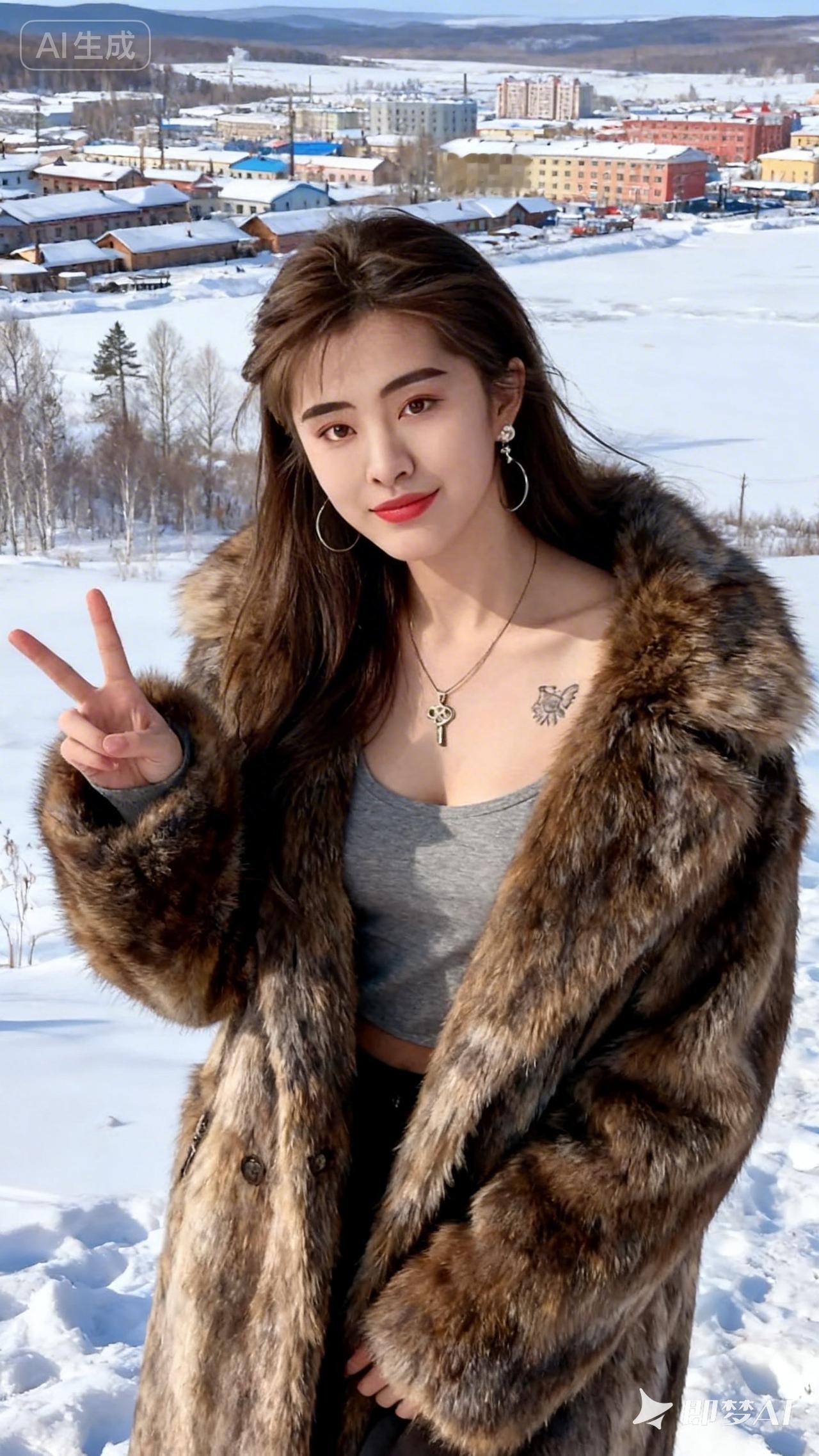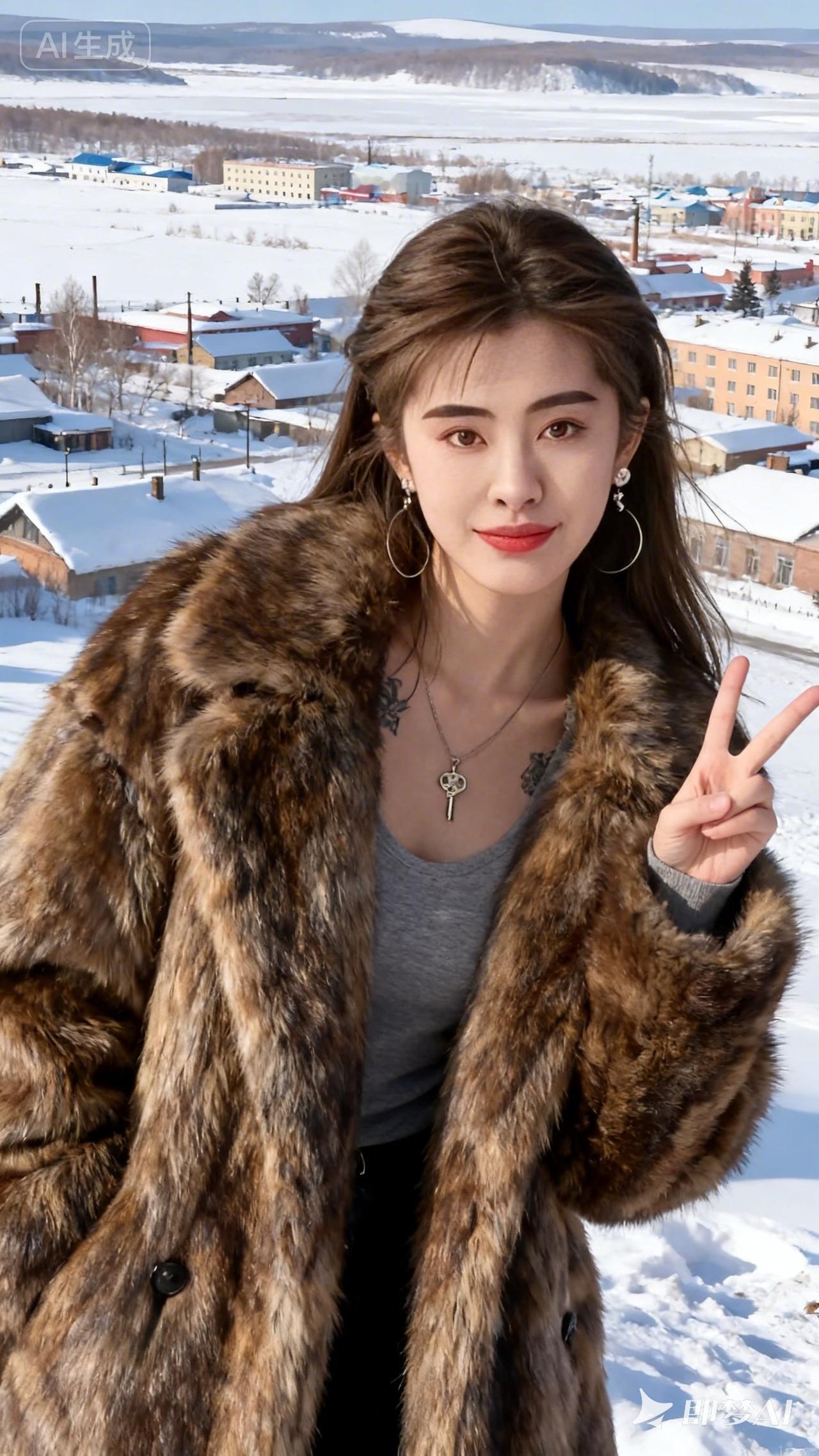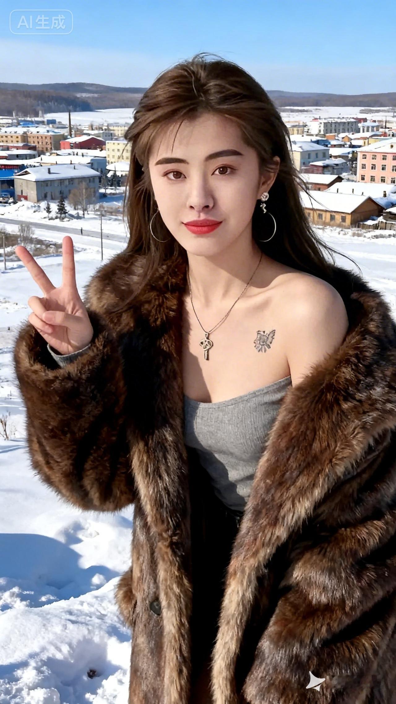 冬日雪景中的时尚大片,毛绒大衣与雪地完美融合,尽显冬日魅力!🌨️👗💄