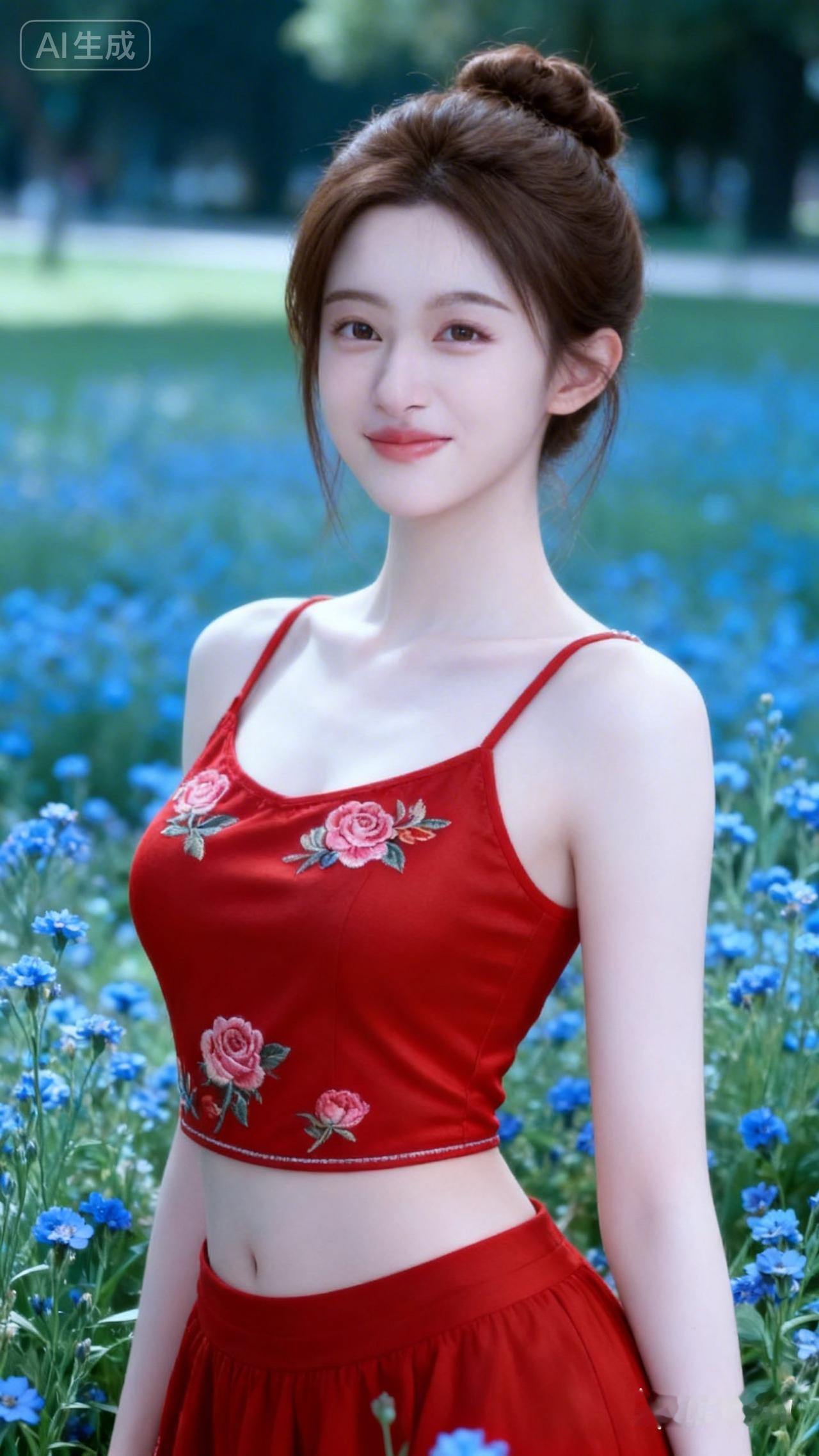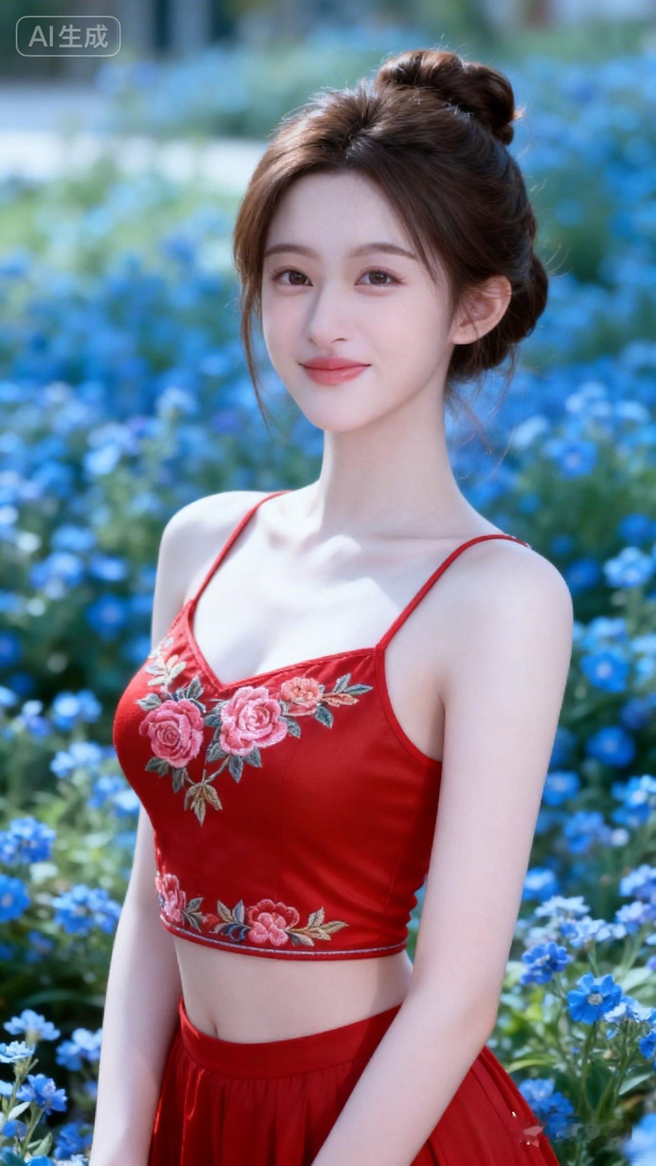 在花海中绽放,红衣少女惊艳绽放!🌸💃