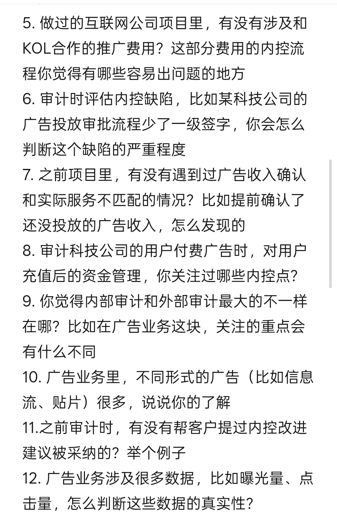 11.之前审计时,有没有帮客户提过内控改进建议被采纳的?举个例子