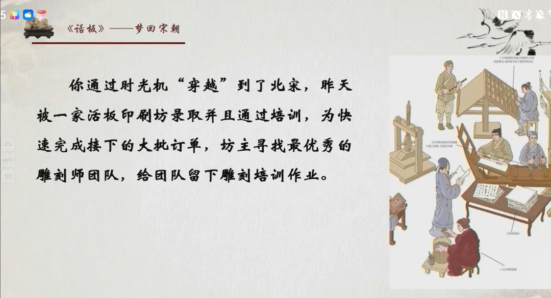 1.你通过时光机“穿越”到了北宋,昨天被一家活板印刷坊录取并且通过培训,为快速完成接下的大批订单,坊主寻找最优秀的雕刻师团队,给团队留下雕刻培训作业。